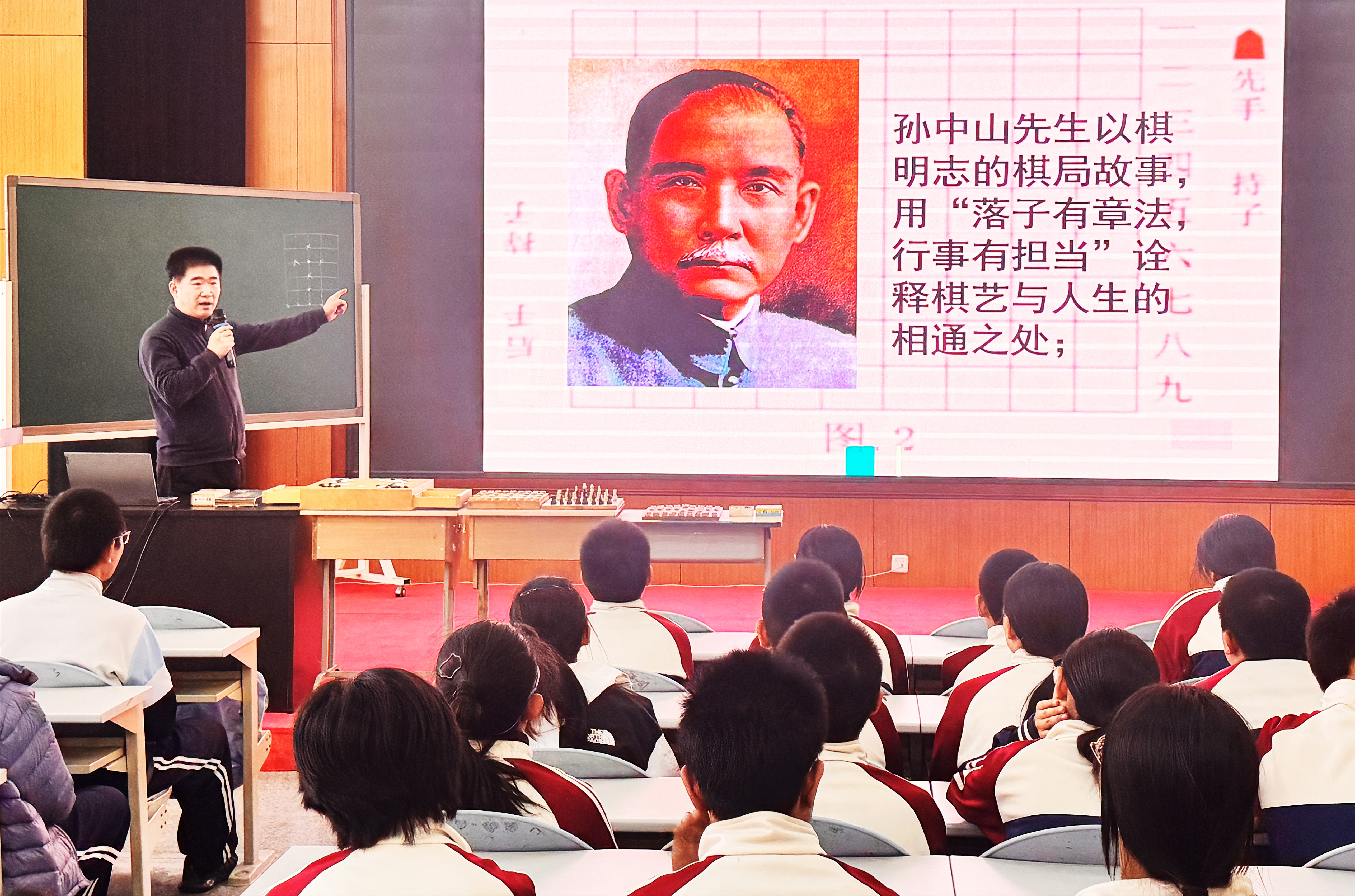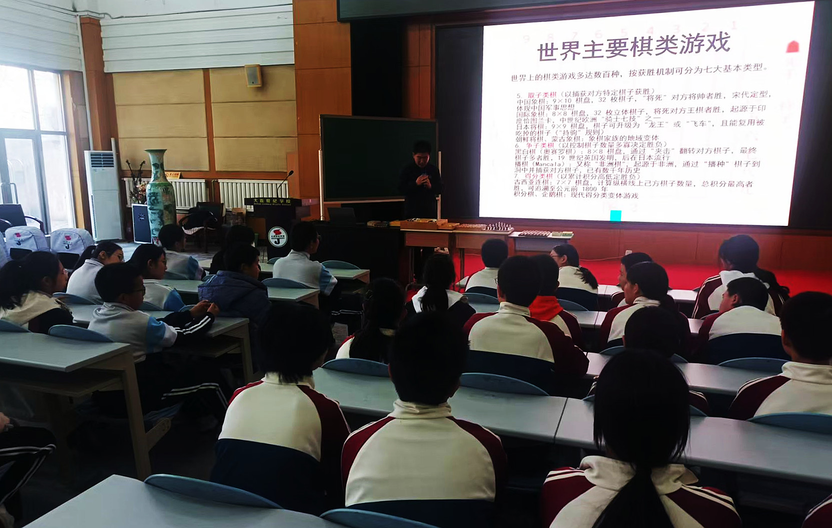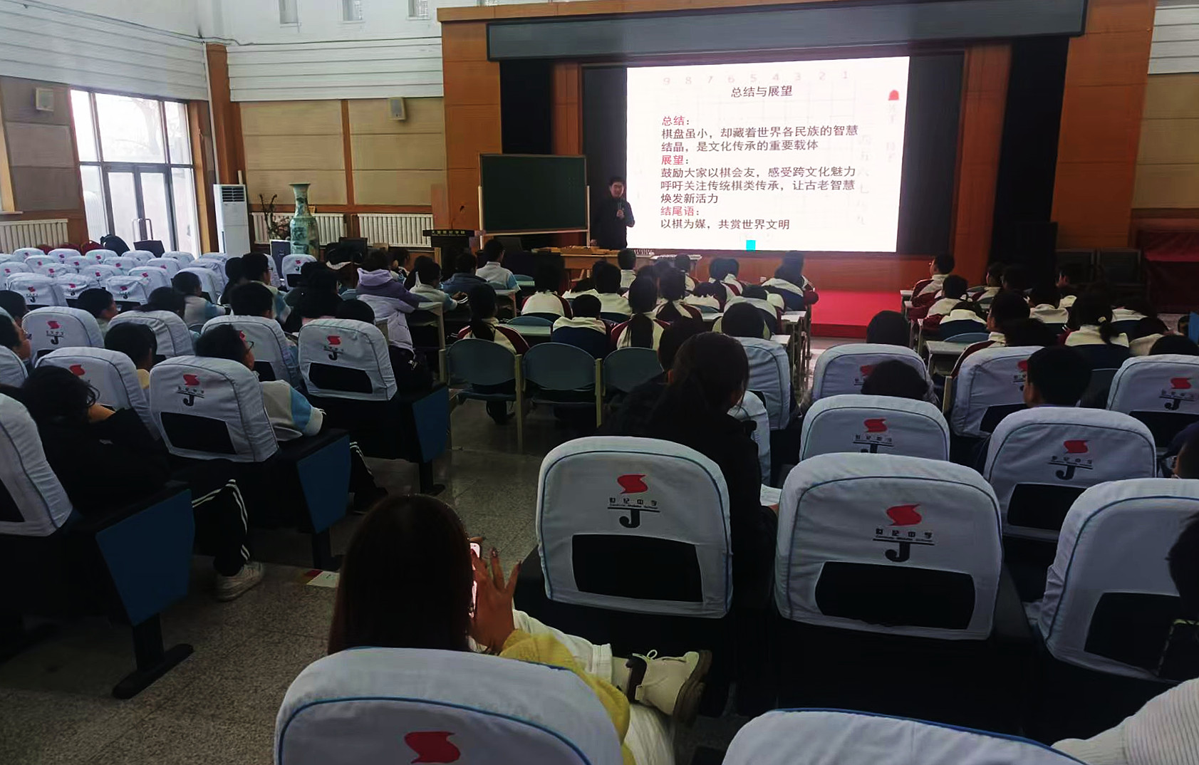 活动核心环节“棋脉纵横”主题讲堂中,传统文化讲师 何涛 老师,以清晰的脉络梳理了三大主流棋种的文化基因。从象征欧洲文明缩影的国际象棋,到凝聚中华智慧结晶的围棋,再到作为全球普及代表的国际跳棋,每一种棋类的起源传说、规则演变都被讲解得生动详实。为让棋道精神更易感知,讲师特别分享了孙中山先生以棋明志的棋局故事,用“落子有章法,行事有担当”诠释棋艺与人生的相通之处;同时讲述国际象棋世界冠军谢军“以棋为桥”促进中外文化交流的经历,让参与者深刻体会到棋类运动的国际价值。现场展示的世界智力运动会赛事图片,更直观展现了棋类运动的国际化发展趋势,引发阵阵赞叹。