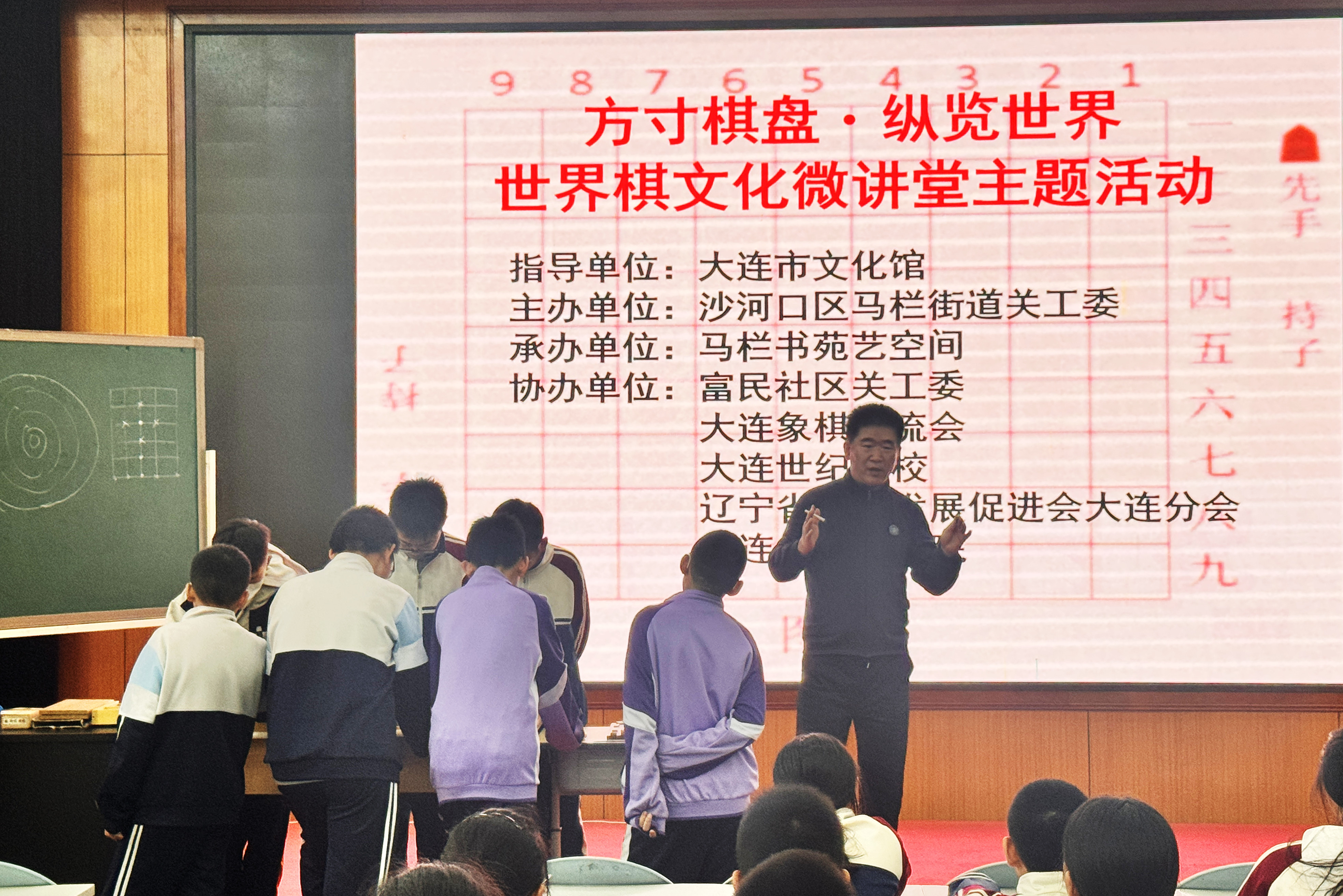 2025年11月26日,由大连市文化馆指导,沙河口区马栏街道关工委主办,马栏书苑艺空间承办的“方寸棋盘 纵览世界”世界棋文化微讲堂主题活动,在大连世纪学校活动室温情启幕。广大市民及大连世纪学校的师生百余人齐聚一堂,在黑白棋子的交错与国际棋艺的碰撞中,开启了一场跨越地域的文化之旅。