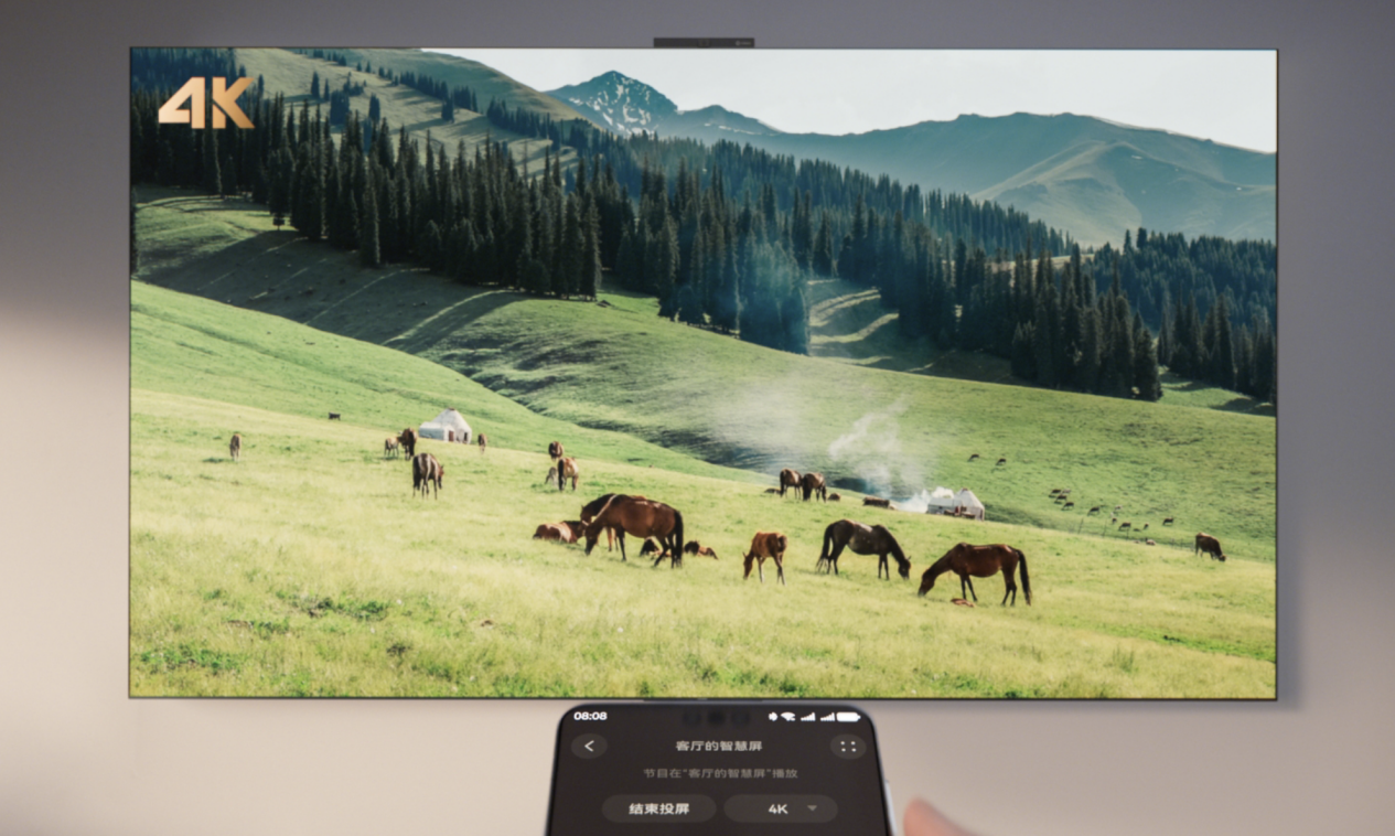 华为Vision智慧屏5的4K超级投屏功能同样出色实用,无需单独开通大屏会员和安装APP端应用,只要有手机端会员就可享受4K超清观影。一碰投屏操作更加便捷,手机轻触遥控感应区瞬间完成画面投射,全家轻松共赏相册视频与精彩影像。