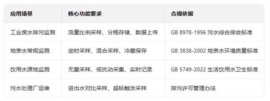 不同监测场景对水质自动采样器的功能要求不同,核心场景适配标准如下: