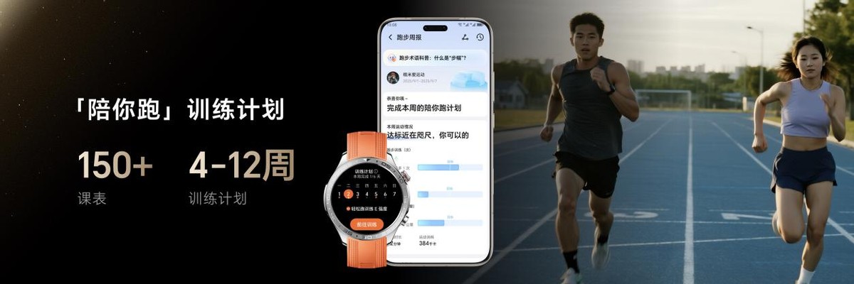 荣耀还联合北京体育大学奥运体能保障团队联合开发了AI跑步教练,将身体力量评估和大众跑者分级体系引入到产品功能之中,围绕跑步入门、健康保持和成绩提升三大目标,为不同阶段的跑者提供科学训练计划及课程。荣耀手表5 Pro还可以根据实际运动负荷监控、事物冲突、异常天气、女性生理周期、疲劳状态五大场景实时智能调整训练计划,为你打造专属的AI跑步教练。