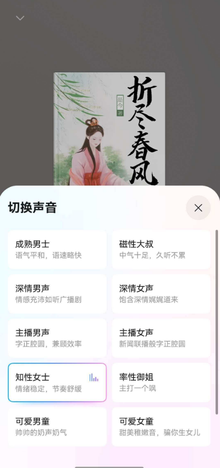 看累了想“听书”,华为阅读的“精品音色” 也让我很惊喜,每一个声音都听起来非常自然,有情绪起伏和呼吸停顿,完全不是那种冷冰冰的机器音,沉浸感十足。
