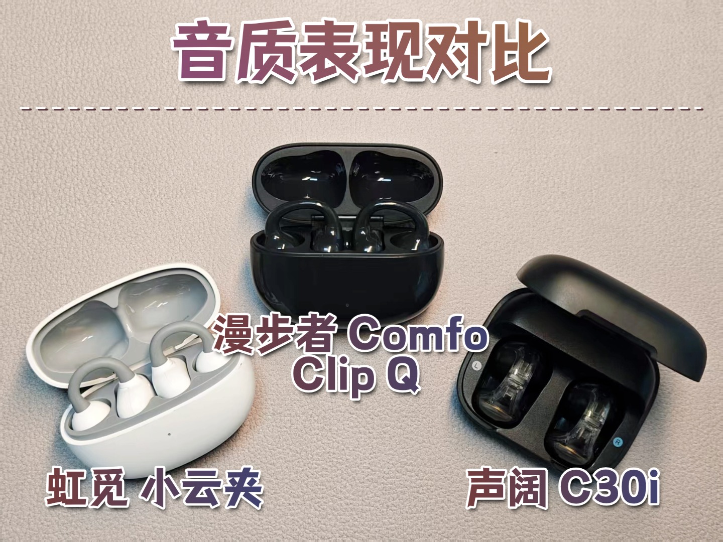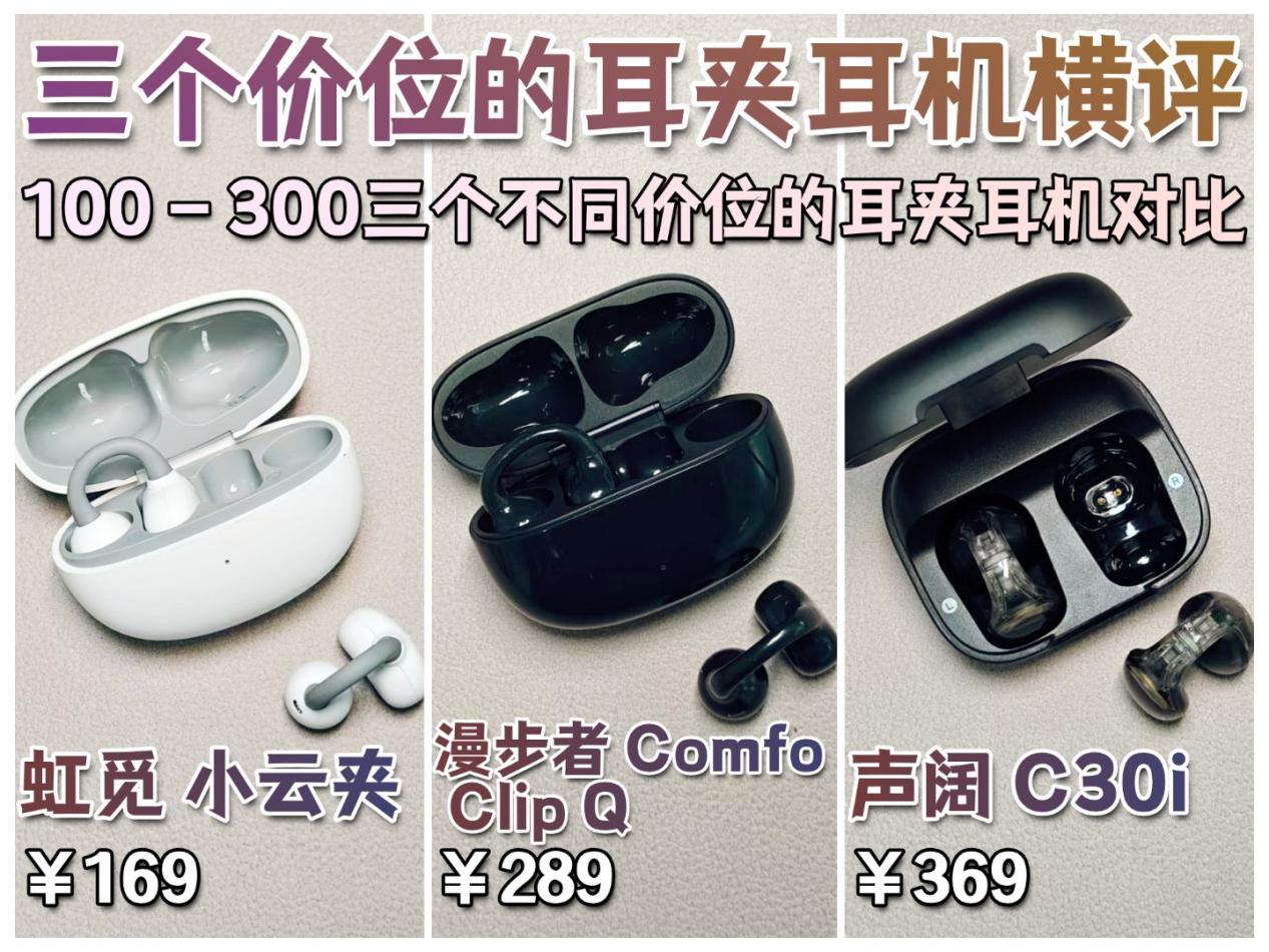 三款不同价位的平价耳夹式耳机里,它们之间的区别是什么?那么就让我为你带来虹觅小云夹、漫步者Comfo Clip Q以及声阔C30i这三款耳夹耳机的横评对比吧,分别测评了音质、佩戴、配置以及防漏音的表现,没有喜欢的那款也可以做个参考看看。