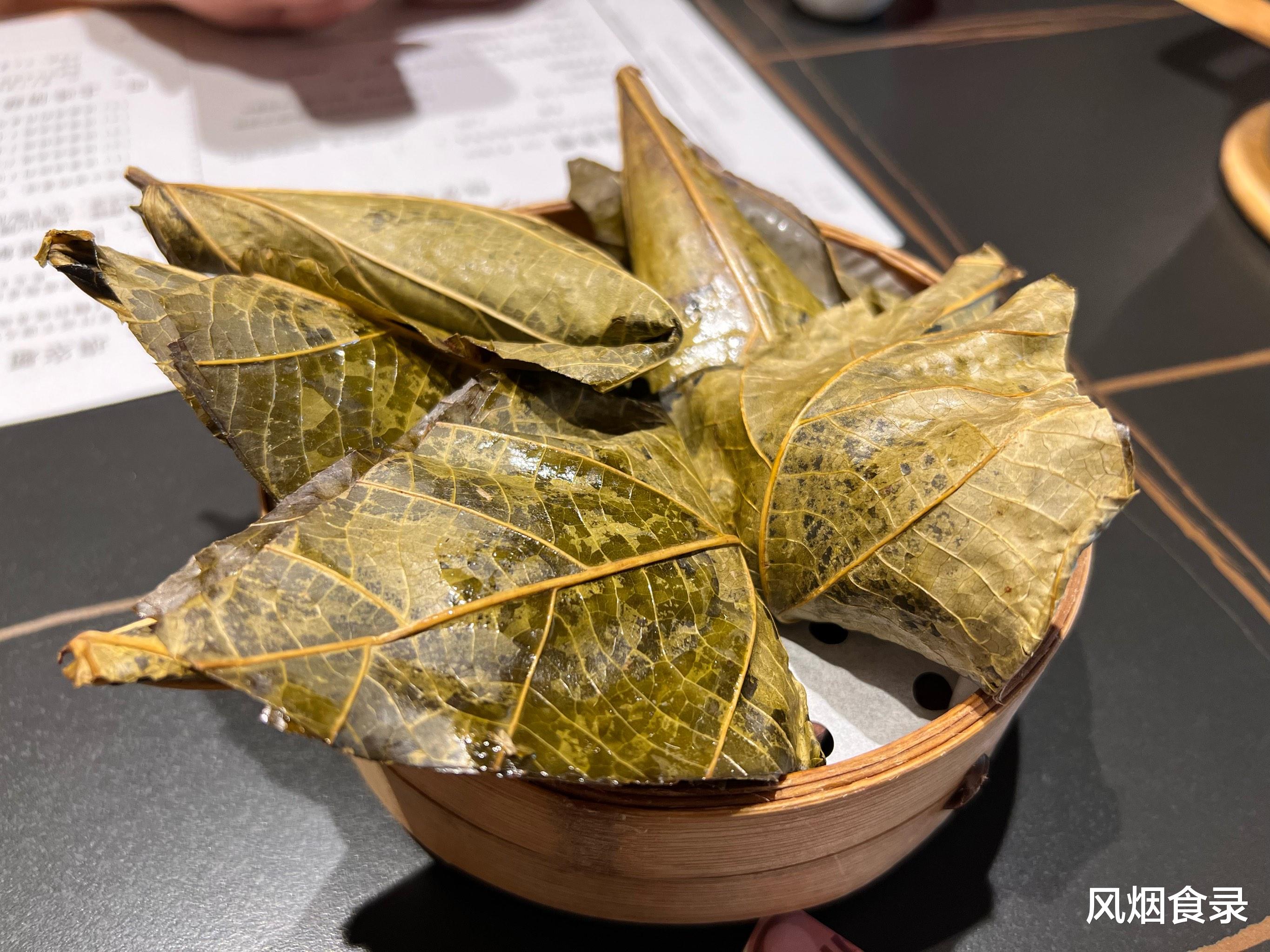 桐叶裹着糯米粉、野蒿与腊肉丁,蒸时满屋飘香。