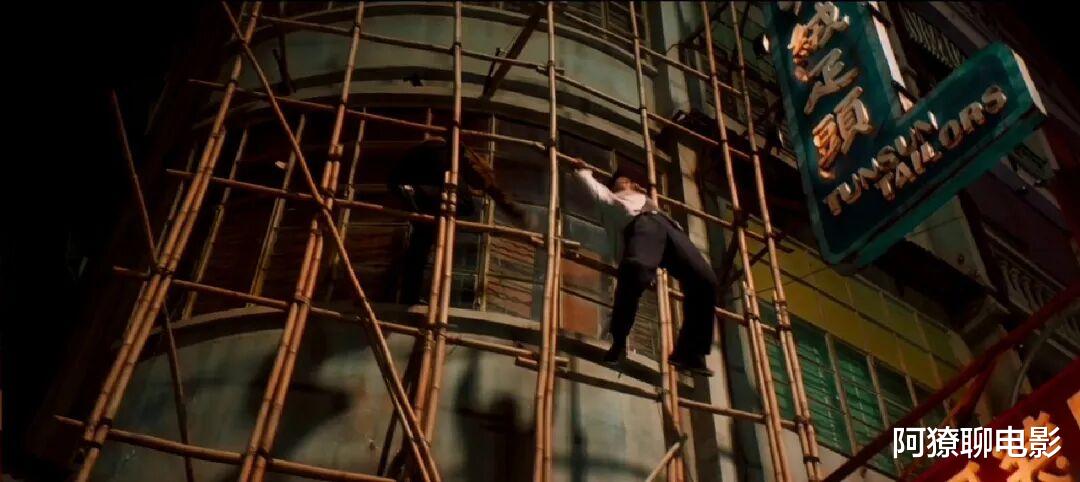 谁还记得,刘天王当年也在竹棚架上耍过帅?《赌神》里的刀仔,上得了竹架。下得了赌场。一副小流氓的表情,一直陪他成就了后来的赌侠。这一段竹架戏虽非全片重点,但其在竹架间轻巧穿梭的姿态,为角色玩世不恭的性格增添了几分市井朝气,成为港片黄金时代竹棚场景中一抹独特的青春印记。