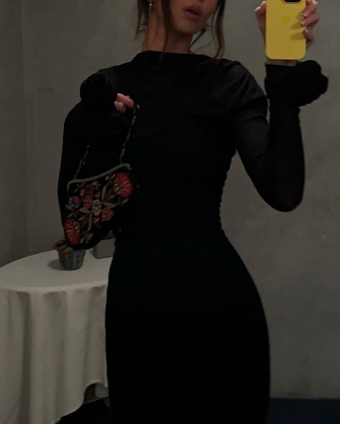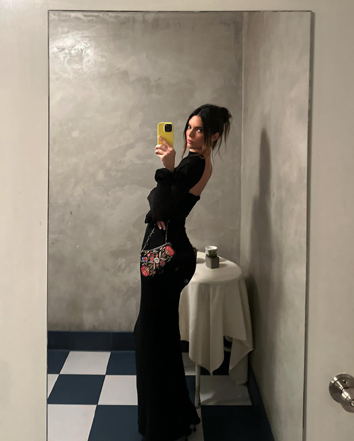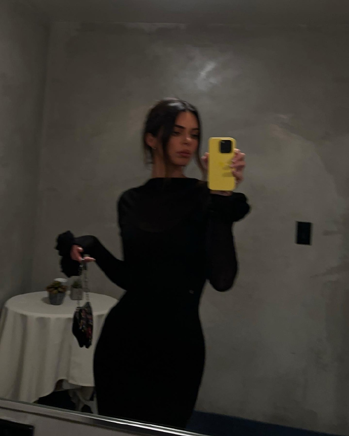 Kendall Jenner一袭黑裙,对镜自拍,好美!