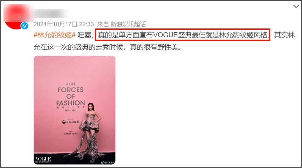 随后爆料者又爆出关键信息,说当时霸占更衣室的女星凭借造型还出了套片子,当时还在社交平台上获得了好评。然后就有人将矛头直指林允,甚至拿出了诸多细节表示跟林允都能对上。