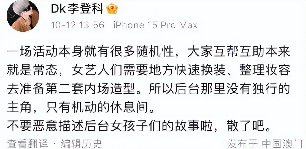 而且小八也更相信娜扎经纪人说的,毕竟一场盛典几十个艺人,就给安排三个更衣室,还是专属的,从合理性上也有些问题,毕竟明星到场和出场顺序不一样,更衣室一直空着对主办方来说也是一个浪费。所以我更相信是轮流使用的情况,之中出现些小摩擦应该也是正常,不会像爆料者说的那么夸张。