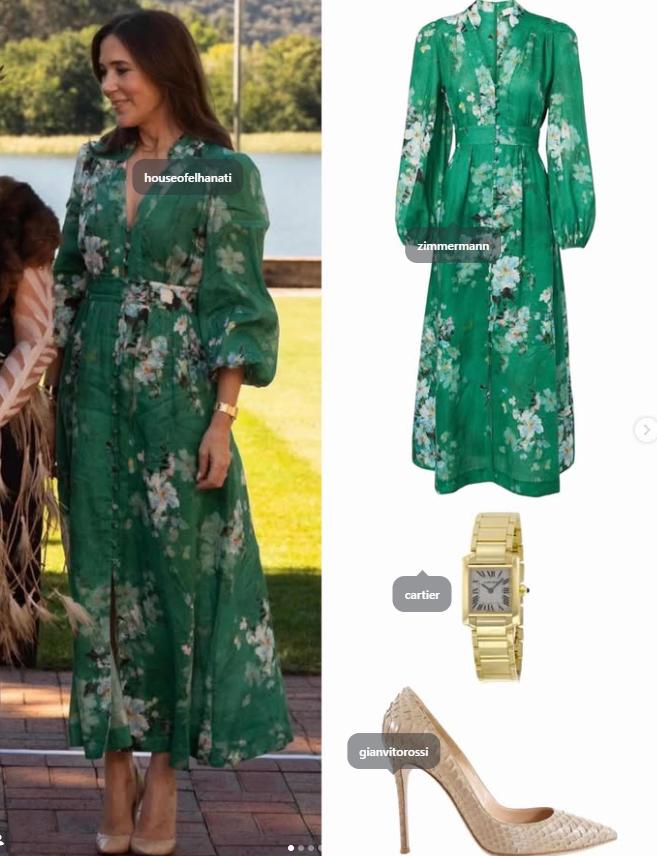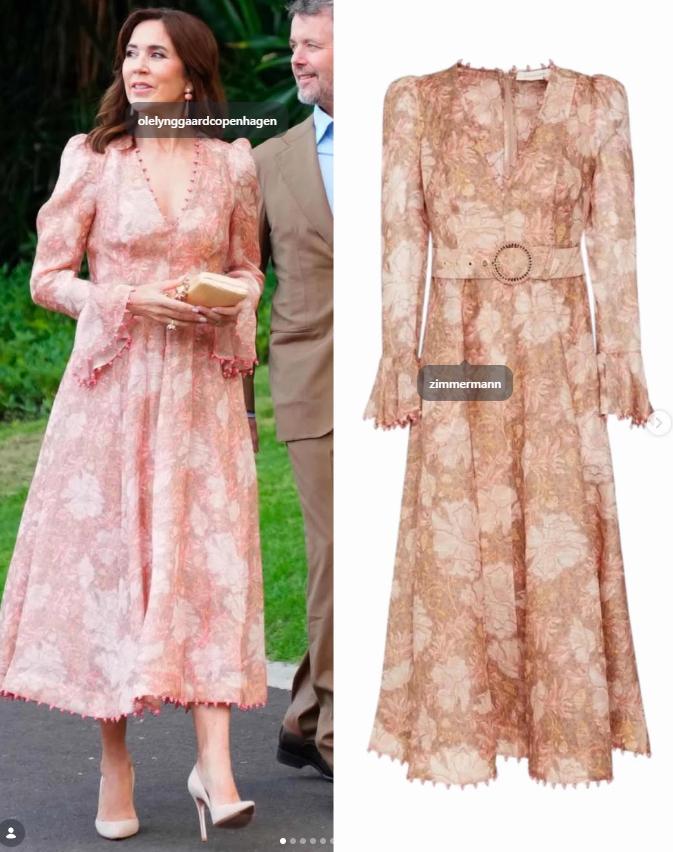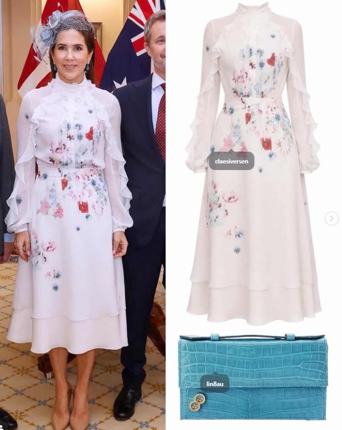 其中在欢迎仪式上的白底花裙是新购置的,Claes Iversen这个设计师品牌荷兰王后比较喜欢