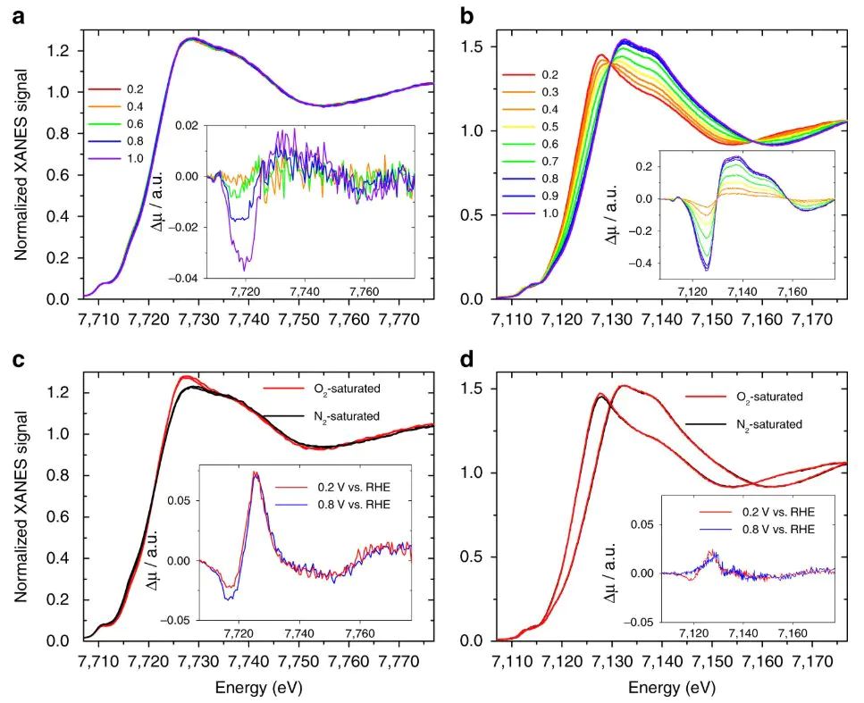 图7:Operando XANES随电位变化的边位与白线演化。DOI:10.1038/s41467-017-01100-7