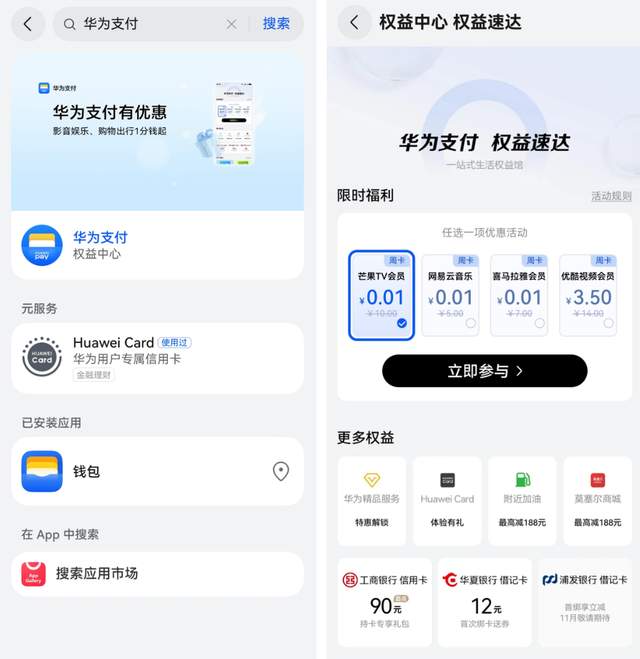 而现在,这些日常优惠有了一个统一的“集合地”。如果你也用华为手机,在桌面轻轻右滑,进入负一屏,搜索“华为支付”,生活权益一键直达,就像打开了当代生活省钱小锦囊。