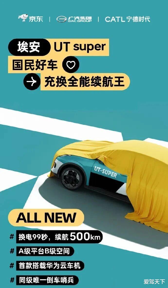 11月9日,京东联合广汽集团、宁德时代推出的“埃安UT super”将在京东平台首发,配备500km续航大电池,支持99秒换电,定位10万级纯电车市场。