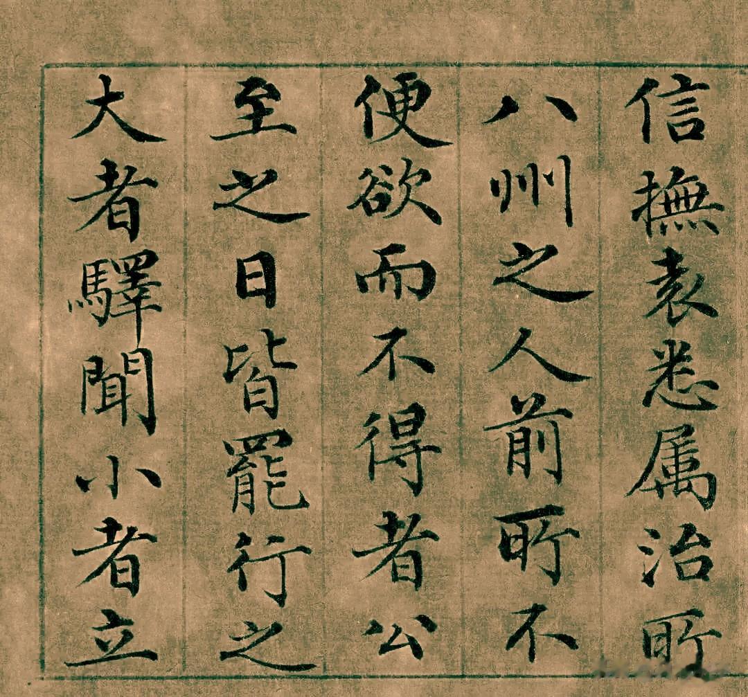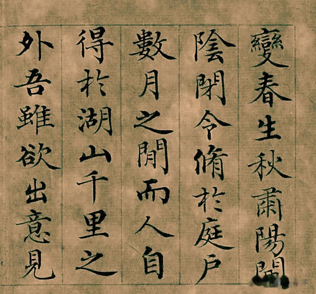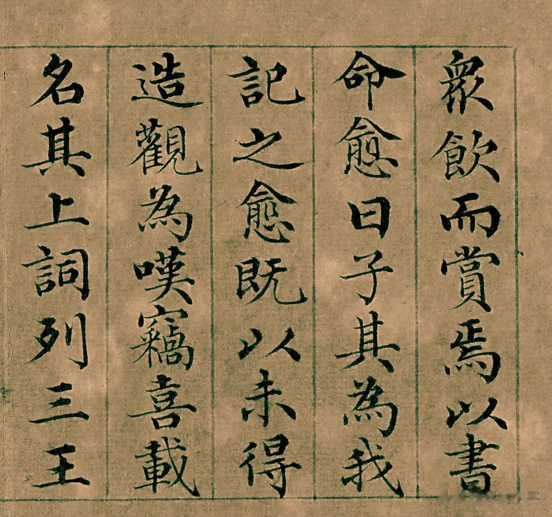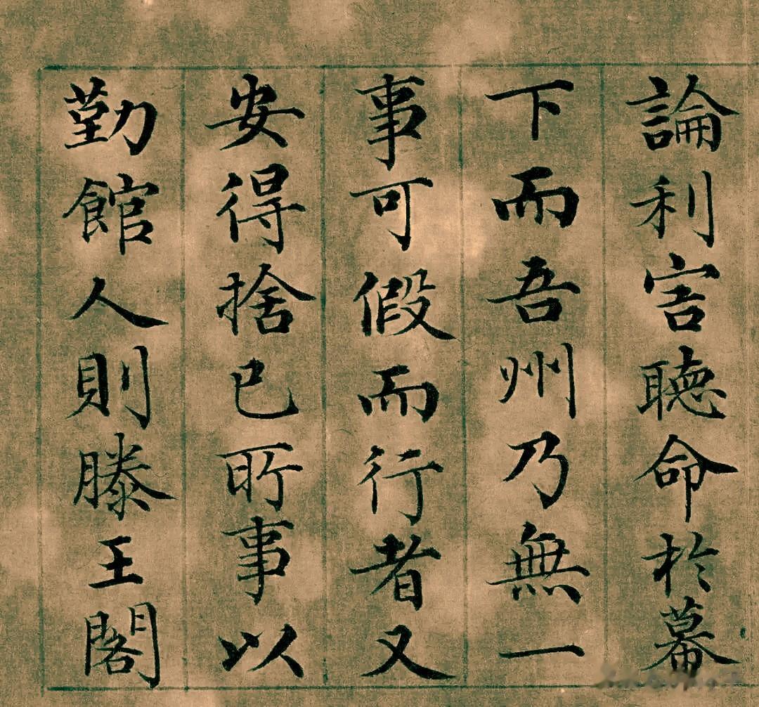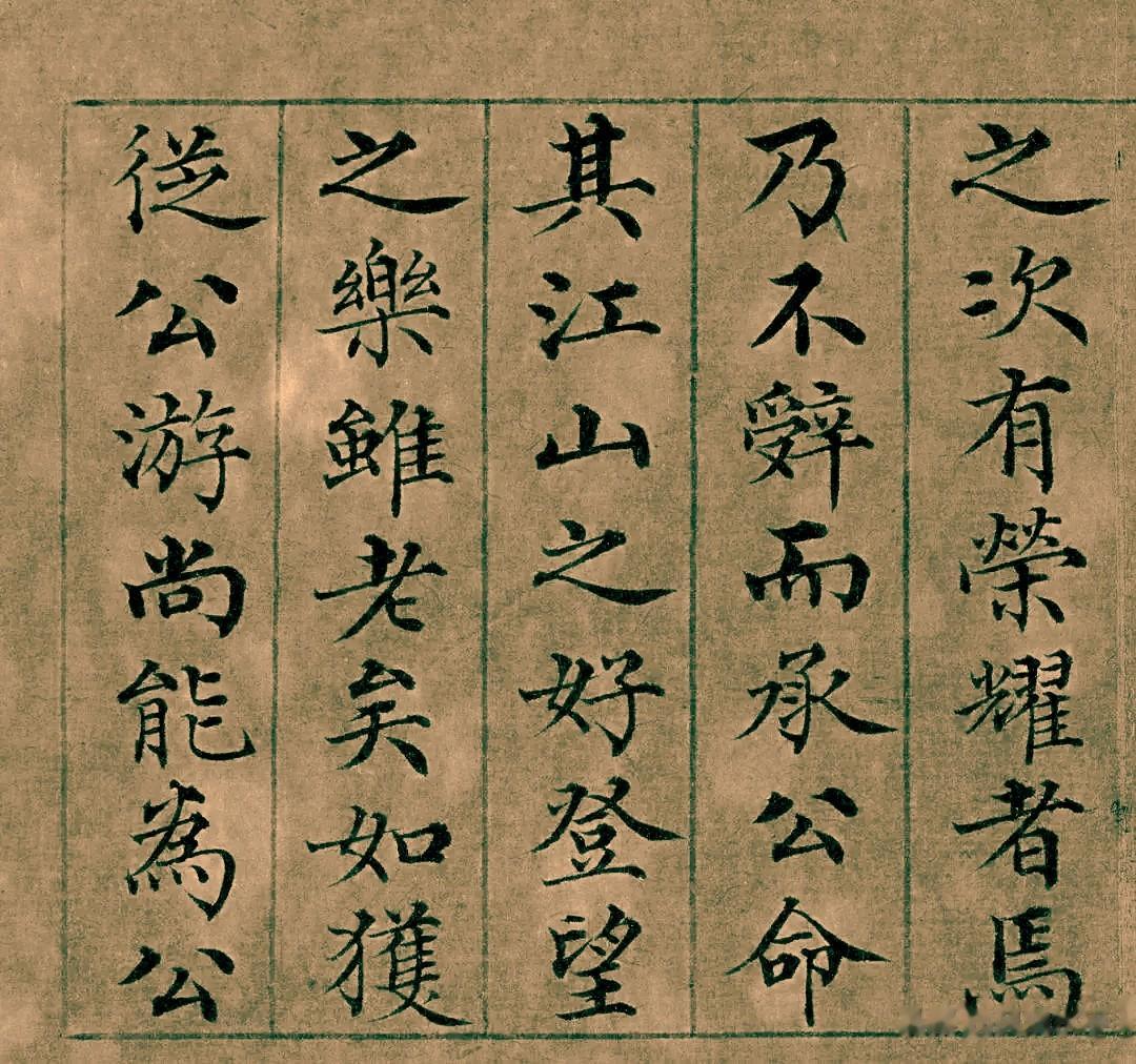 观其用笔,藏锋含蓄,捺画舒展,横细竖粗的对比强化了视觉张力,字间疏密得当,通篇气息连贯。墨色乌黑如漆,与纸白形成鲜明对照,更显庄重典雅。然而,馆阁体的局限亦在其中——过于追求工稳,稍欠个性锋芒,如朝服端笏的士大夫,仪态万方却难见恣意性情。