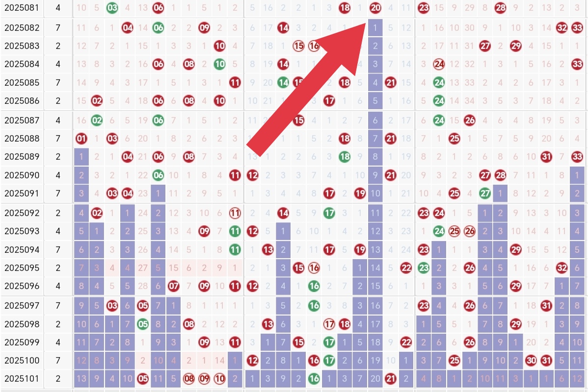 遗漏:从上次开出到本期所间隔的期数。(例如:红色球20号上次开出时间2025年第81期,当前开出2025年101期,101-81=遗漏20期)