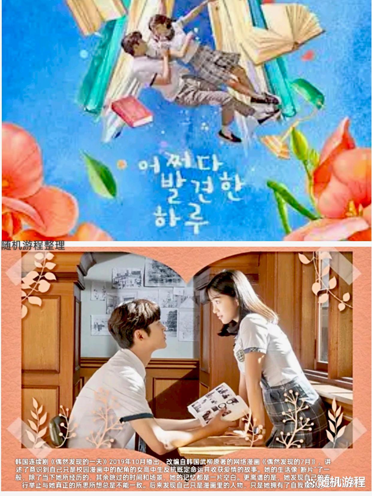 近期,我看了一部韩国连续剧《偶然发现的一天》,改编自韩国武柳原著的网络漫画《偶然发现的7月》,讲述了意识到自己只是校园漫画中的配角的女高中生反抗既定命运并收获爱情的故事。她的生活像“断片”了一般,除了当下她所经历的,其余跳过的时间和场景,她的记忆都是一片空白。更离谱的是,她发现自己的言行举止与她真正的所思所想总是不能一致。后来发现自己只是漫画里的人物,只是她拥有了自我意识。……。该剧于2019年10月2日在韩国MBC电视台首播,2020年9月15日,该剧获得第15届首尔国际电视节韩流电视剧优秀作品奖。