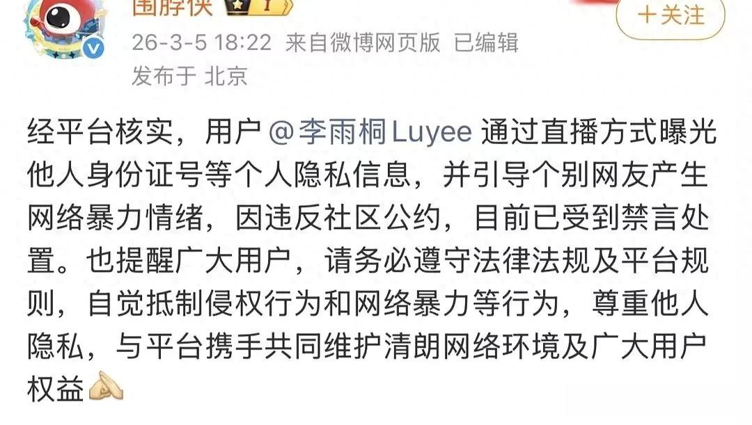 当微博官方一纸禁令封禁了当事女主李雨桐的账号,这场闹剧看似迎来了终章。但这不是简单的“封口”,而是一场精心策划的“权力展示”。