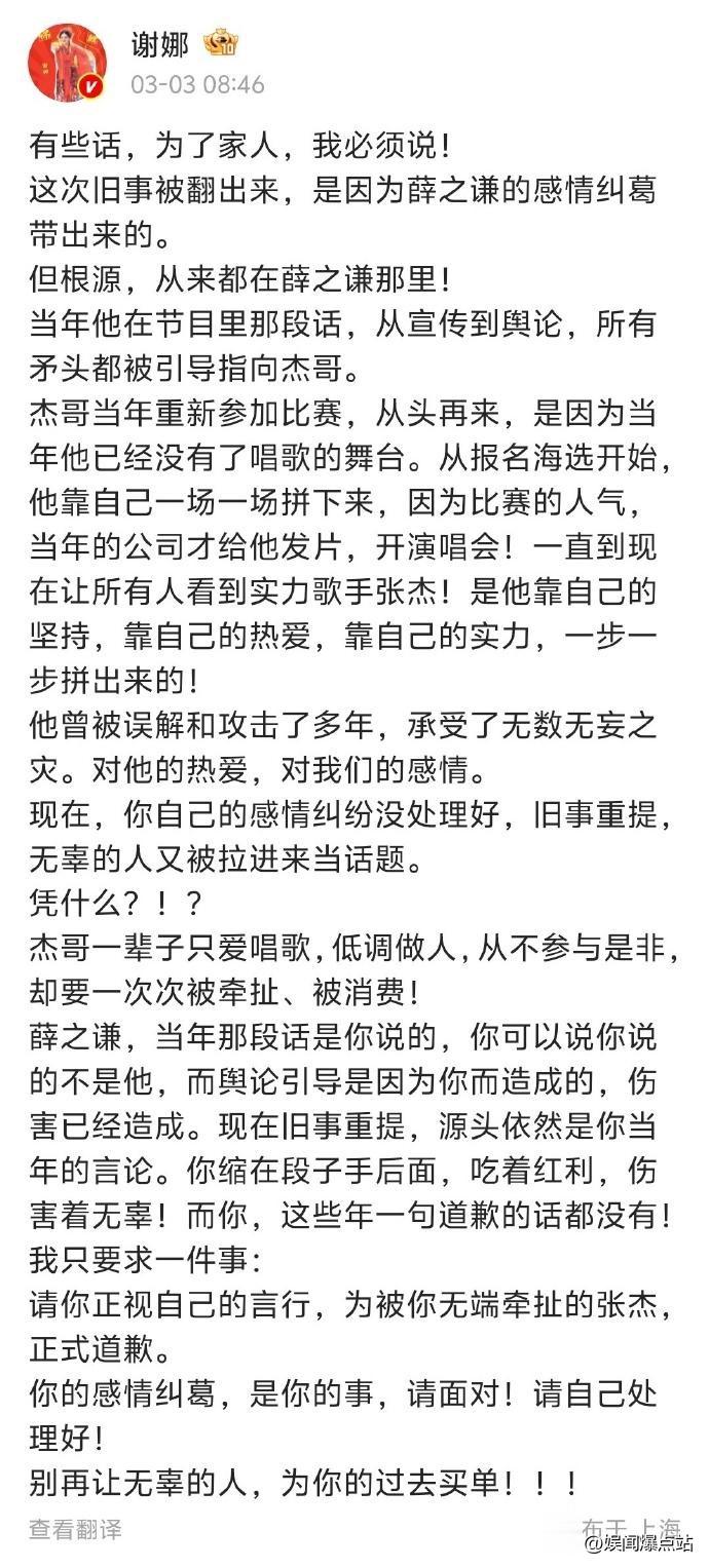 与其说是为张杰鸣不平,不如说这是一次高段位的“危机公关”。通过转移大众视线,将一场可能波及张杰的负面风波,巧妙地转化为了薛之谦与谢娜团队的舆论博弈。这种“杀鸡儆猴”的手段,确实颇有“娱乐圈霸总”的风范。