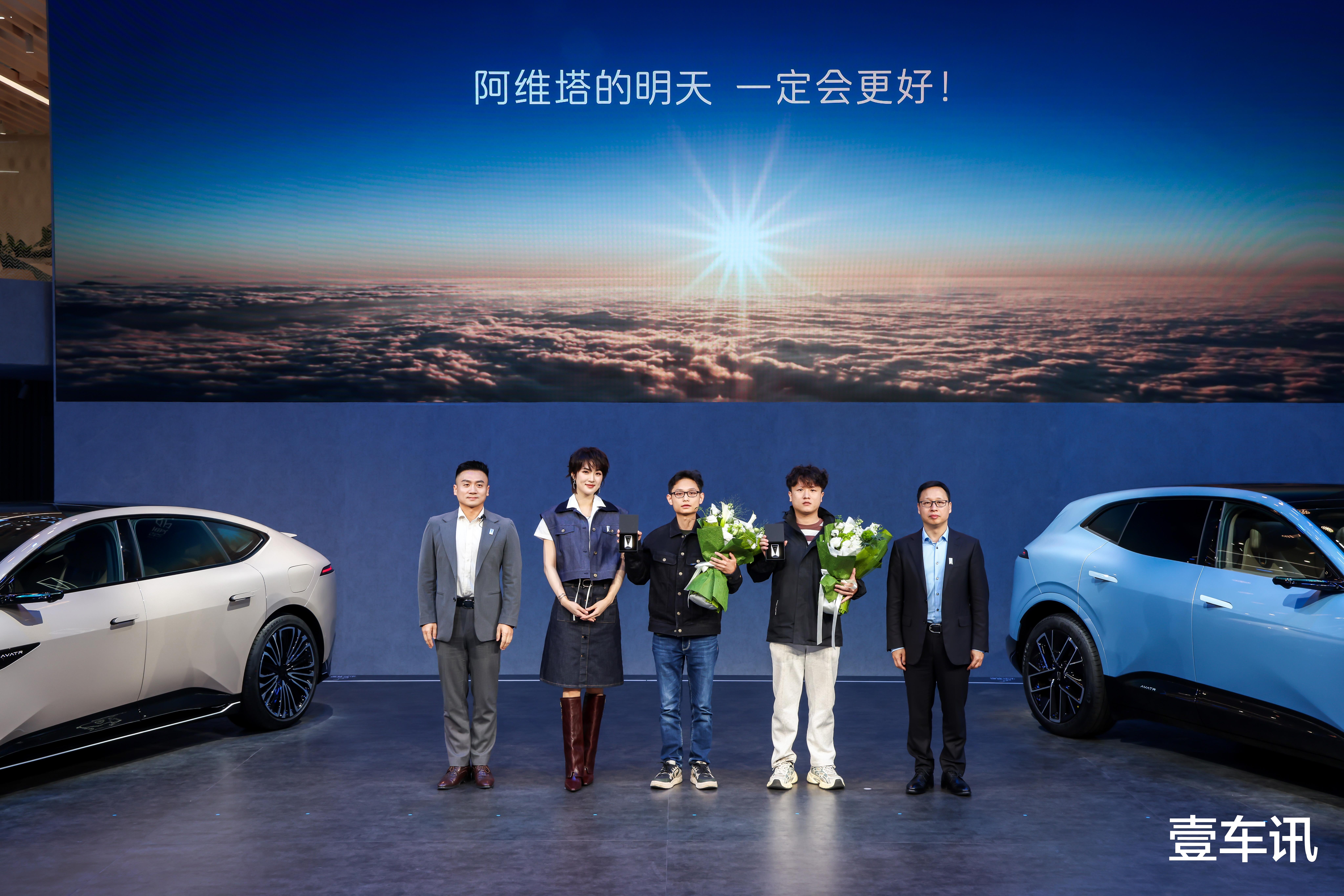 华为智能汽车解决方案BU CEO靳玉志与阿维塔07全球代言人姚安娜向华为4000名员工代表交付新车