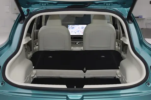 欧拉5定位A级纯电SUV,长宽高分别为4400mm/1845mm/1630mm,轴距2730mm。这样的尺寸在城市中穿梭灵活,停车方便,同时又保证了不错的内部空间表现。实际体验中,前排座椅调节范围充足,身高178cm的体验者坐姿舒适,头部和腿部空间充裕。后排膝部空间约两拳,头部因溜背造型略有压缩,但仍在可接受范围内。中间地台近乎全平,三人乘坐不会过于拥挤。后备厢常规容积为420L,放倒后排座椅后可扩展至1200L以上,满足日常购物、短途旅行需求无压力。值得一提的是,后备厢开口规整,离地高度适中,搬运行李较为轻松。车内储物空间也经过精心规划:门板储物格、中央扶手箱、杯架、无线充电槽等布局合理,随手放置物品十分顺手。整体来看,欧拉5虽属紧凑型,但在空间利用率上表现出色,契合都市年轻用户的实际使用场景。