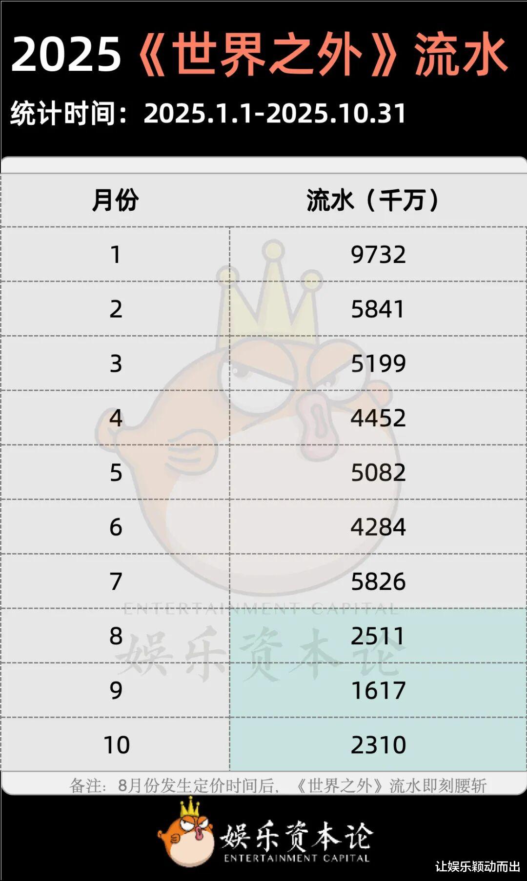 此前河豚君曾经分析过《世界之外》因上线新卡池定价问题,导致信任危机,流水几乎腰斩,且一直没有恢复元气。原本与《深空》相比,《世界之外》本就属于用户轻氪型,剧情无法完全转化为购买力。更雪上加霜的是,今年网易游戏内部震荡,《世界之外》制作人璇子辞职,让一部分“就是喜欢《世外》叙事”的玩家出现了动摇,她们不相信新来接手的人能够撑起这个世界。