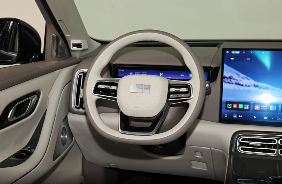 相比于外观,银河M9的内饰更值得探索,说实话第一次看到这套内饰设计风格,个人就有种熟悉的感觉,跟领克900很接近,当前市面上有太多车型采用类似的内饰设计布局,科技感是有了但没有科技感,看多了真的有种千篇一律的感觉,这套内饰设计风格似乎放在任何一款车型身上都没有违和感,相比于这些看得到的设计,个人对它的配置更感兴趣。