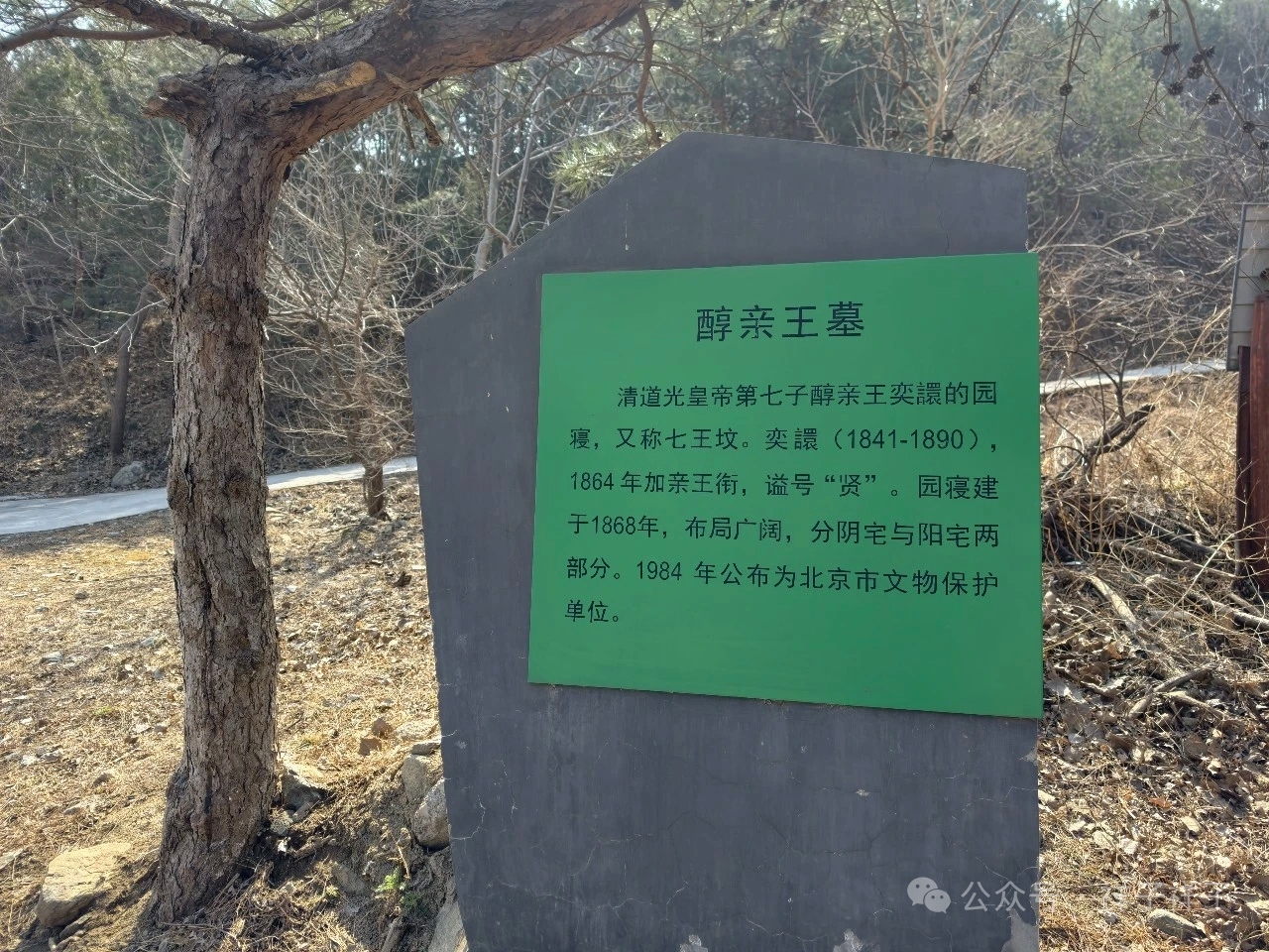 七王爷醇亲王爱新觉罗·奕譞(1841—1890),道光帝的第七子,光绪帝的生父,宣统帝溥仪的爷爷,慈禧太后的妹夫,光绪登基被加封亲王世袭罔替,他生前就为自己选好了这处万年吉地,并自号“退潜主人”,晚年常在此隐居!
