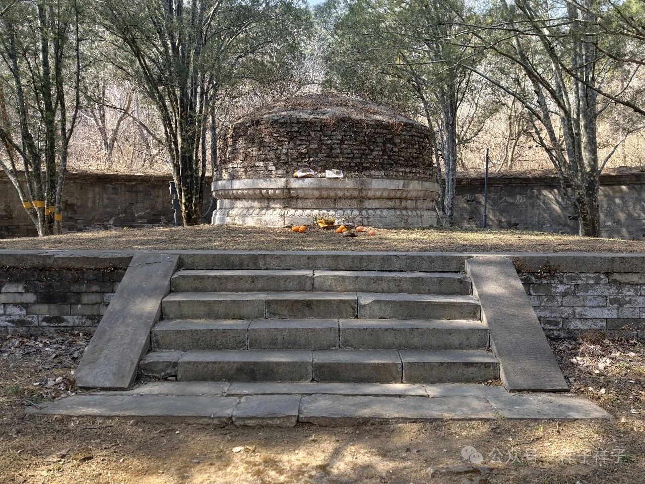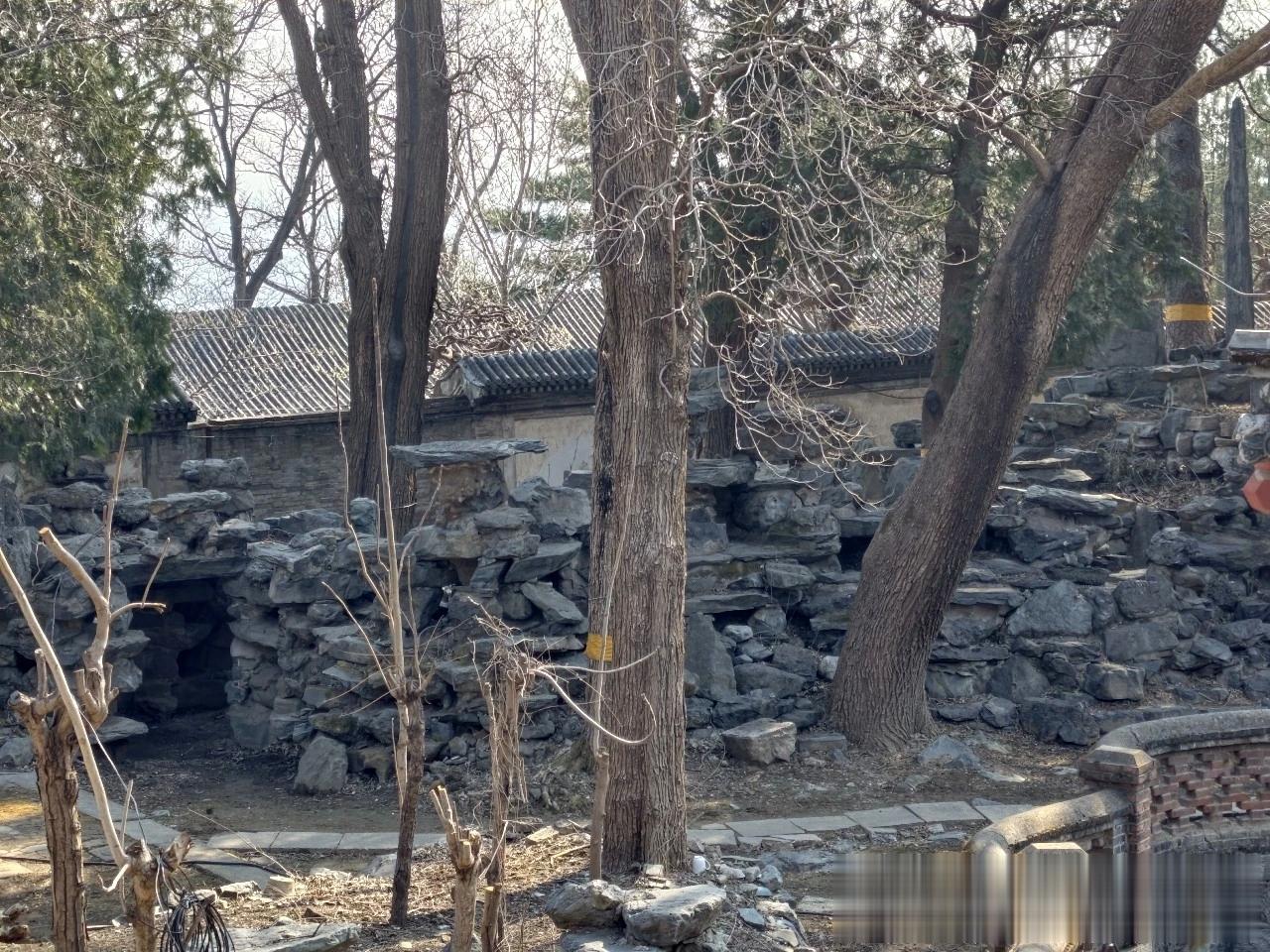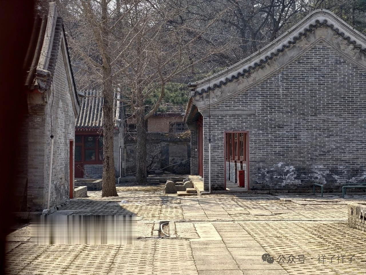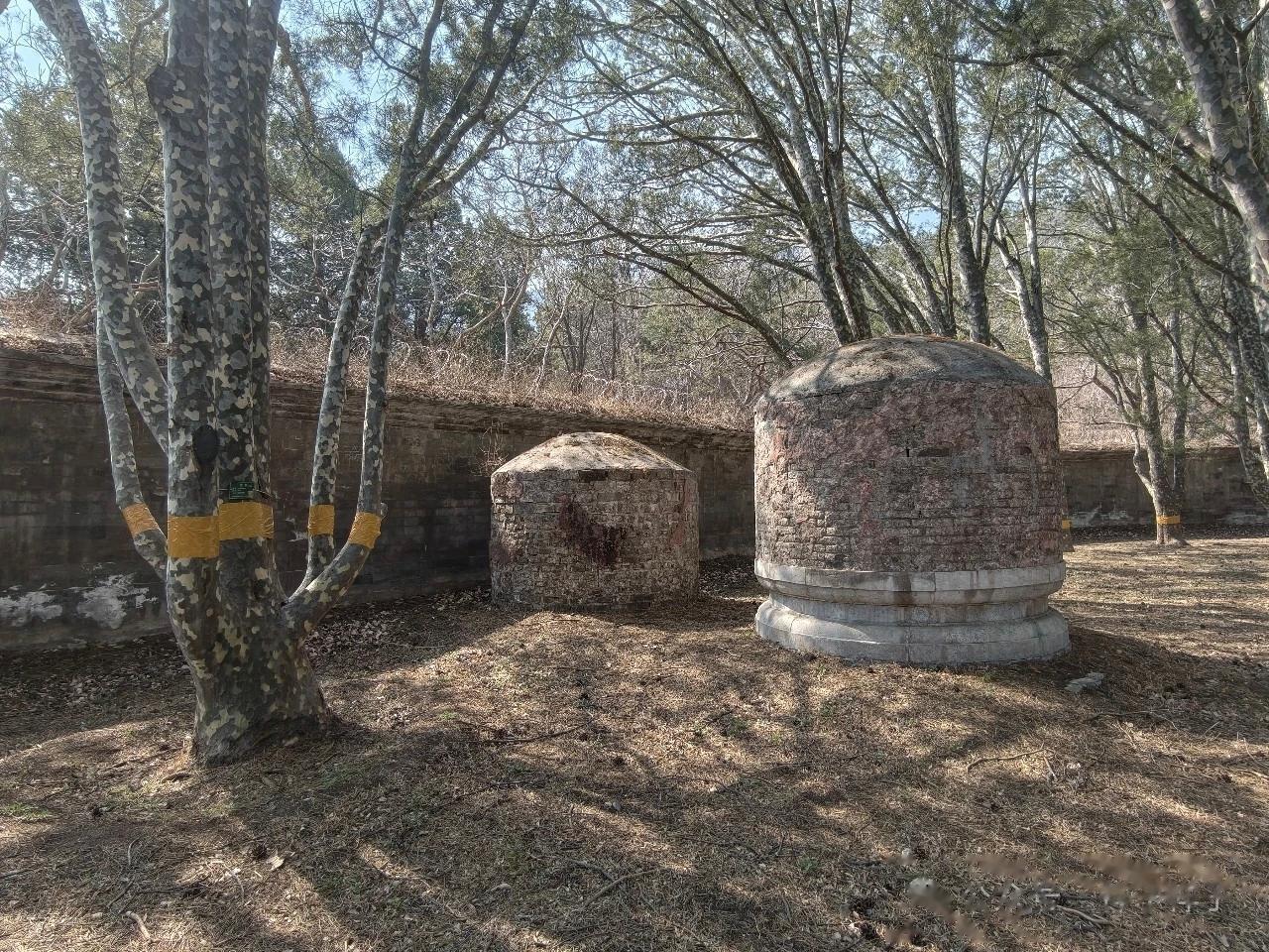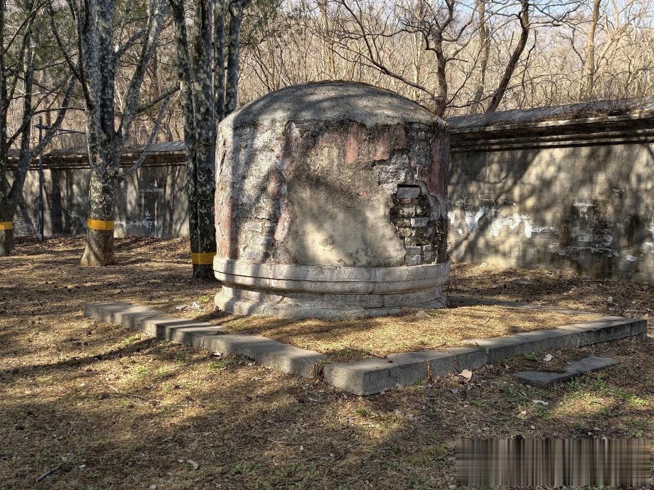 香水院这块风水宝地,被七王爷看中后,为了修建园寝,香水院行宫的旧址几乎被破坏殆尽!!从此处下望,明显可见阳宅和阴宅后面的高大石砌围墙,也隐约能看到阴宅里面的宝顶。
