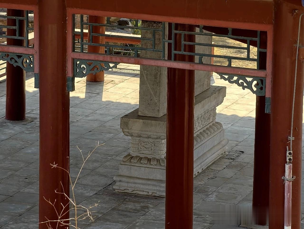 沿着台阶上到平台,最先见到的是大碑亭,内有光绪帝御书神道碑,平台前有围档遮拦,向外只能看到灌木丛生,原曾有墓前七八十级的巨石台阶!!