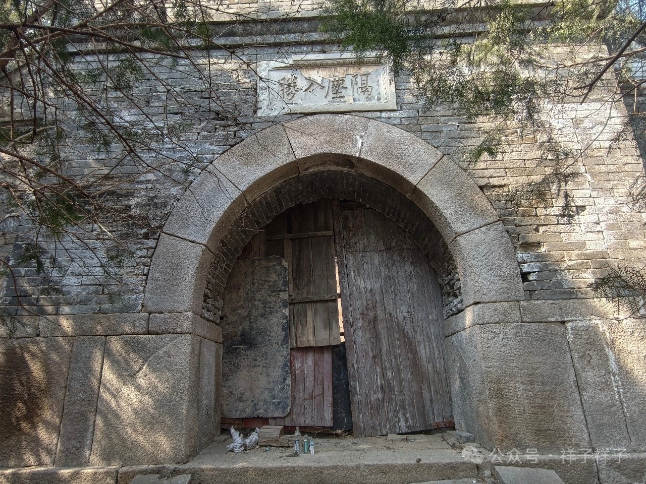 穿过村庄的尽头,是一处森林防火检查站,隔条路就是妙高峰脚下的七王坟,只见山形环抱,有块“醇亲王墓”的标牌,从一侧杂木丛生的几十级台阶上去,一处大门破败的城关式券门,额刻“隔尘入胜”四字,看上去已经很久不开了!!