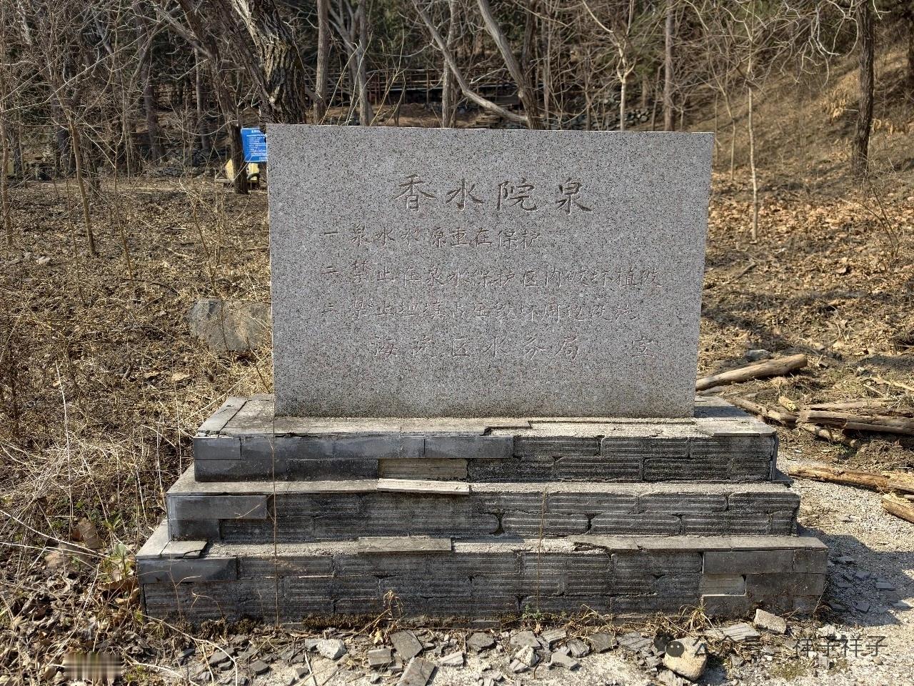 金章宗设八院游览,此其一院。草际断碑,香水院三字存焉。…章宗云,春水秋山,无日不往也!!何为“香水院”?有碑记曰:二泉皆从石罅中岀汇为洪流,如溅珠渐似悬帛,尝之若帝台之浆,嗅之作旃檀之气,故以香水为名。诗赞曰:“奇绝双流香在水,琴音峡雪胜幽潺。”!!