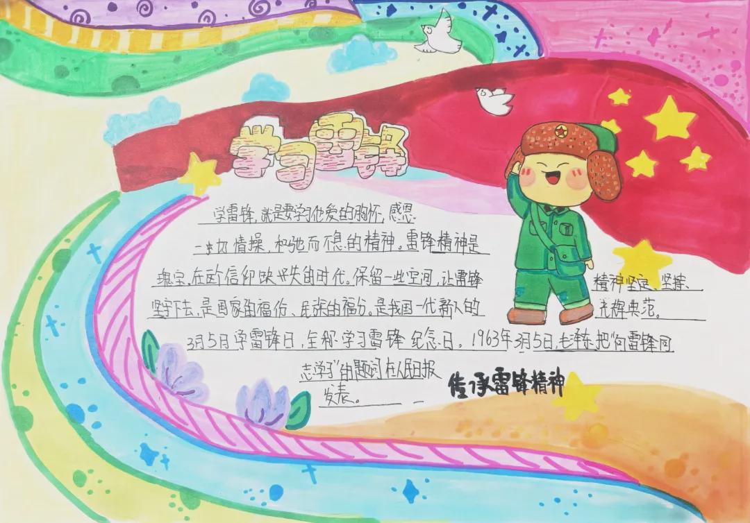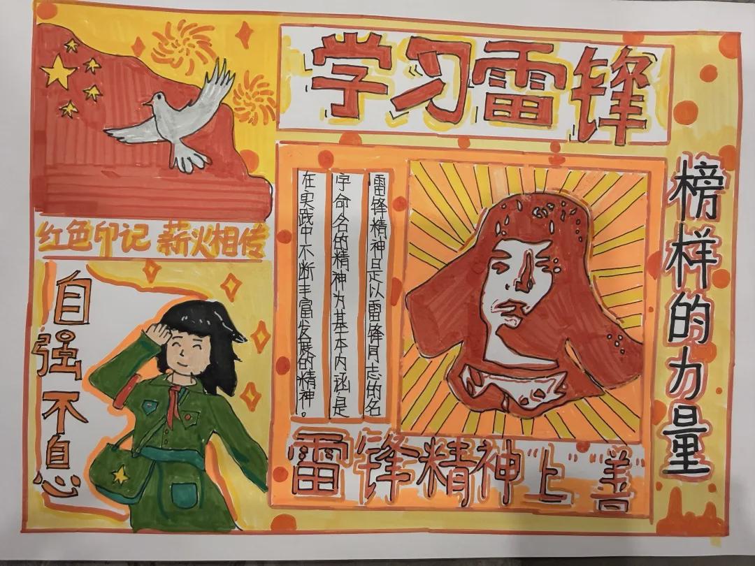 本次活动六年级学生全员参与、层层深入,让学生在实践中感悟雷锋精神的内涵。同学们以“学雷锋 树新风”主题开展手抄报创作活动,利用课余时间精心构思、认真绘制,将雷锋语录、雷锋画像、志愿行动场景融入手抄报中,一笔一画饱含对雷锋同志的崇敬,一字一句彰显学习雷锋精神的决心,一幅幅色彩鲜艳、内容丰富的作品,成为校园里一道靓丽的风景线。
