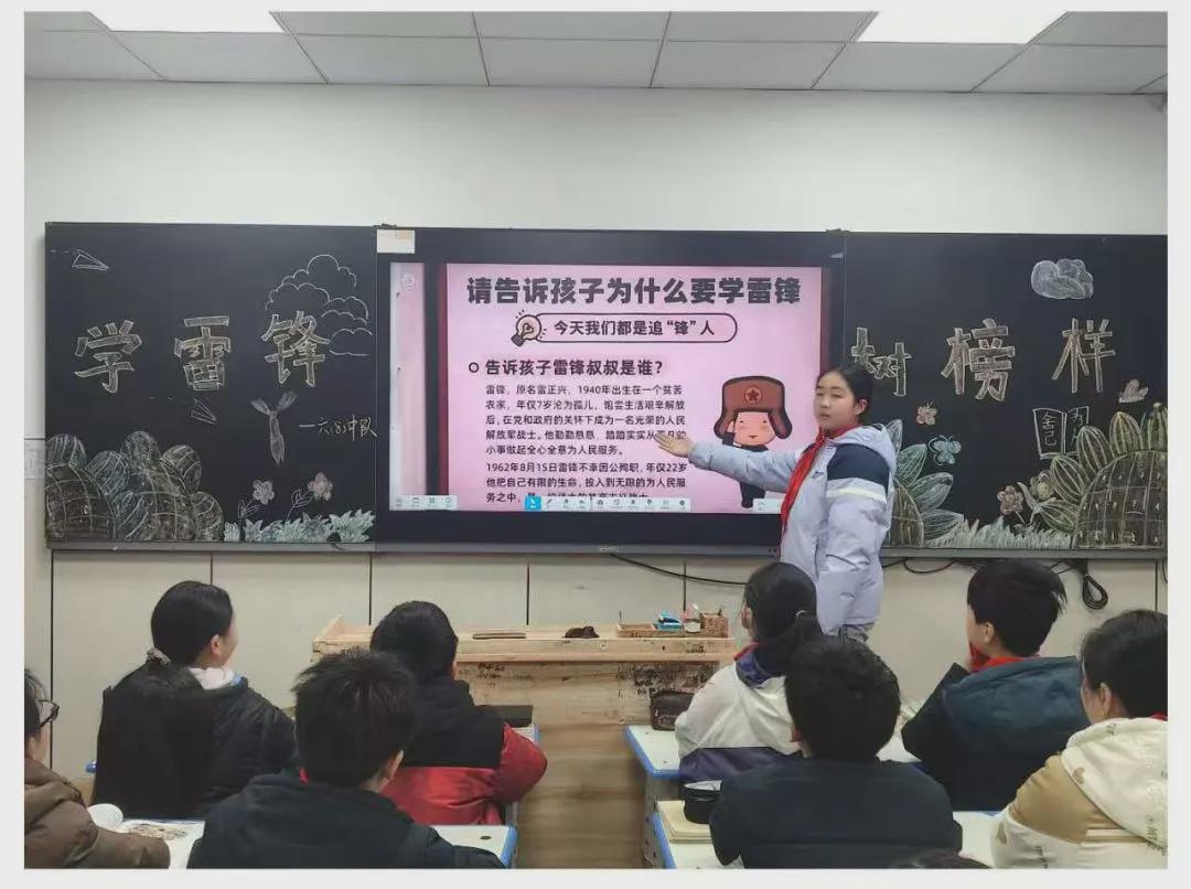 活动期间,六年级联合开展了学雷锋主题班会,班会现场气氛热烈、互动满满。班会围绕“雷锋是谁”“雷锋精神是什么”“我们如何学雷锋”等问题,引导同学们举手回答、踊跃分享,大家结合自身生活,讲述身边的“活雷锋”故事,交流学习雷锋精神的心得体会。同学们深刻理解雷锋精神的时代意义,纷纷表示要从身边小事做起,争做新时代小雷锋。