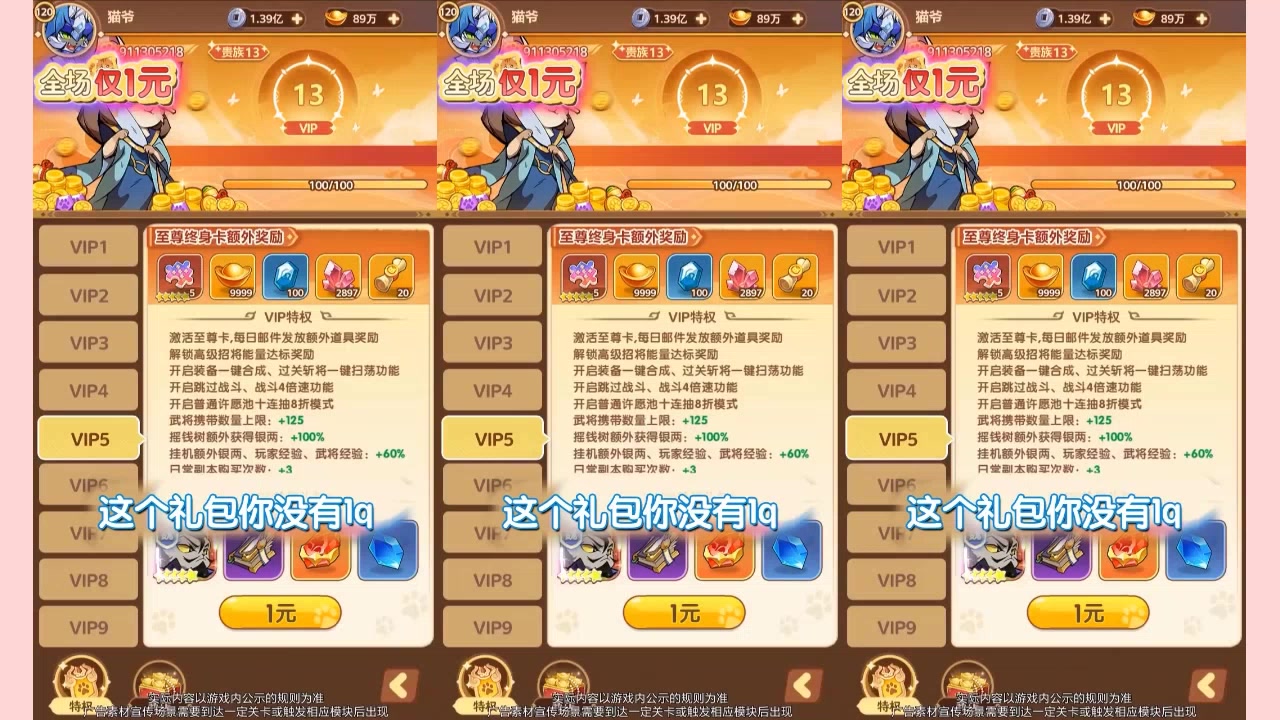 第4个:VIP999 兑换内容:金鱼*588、红色猫武将碎片*10、奶瓶*388