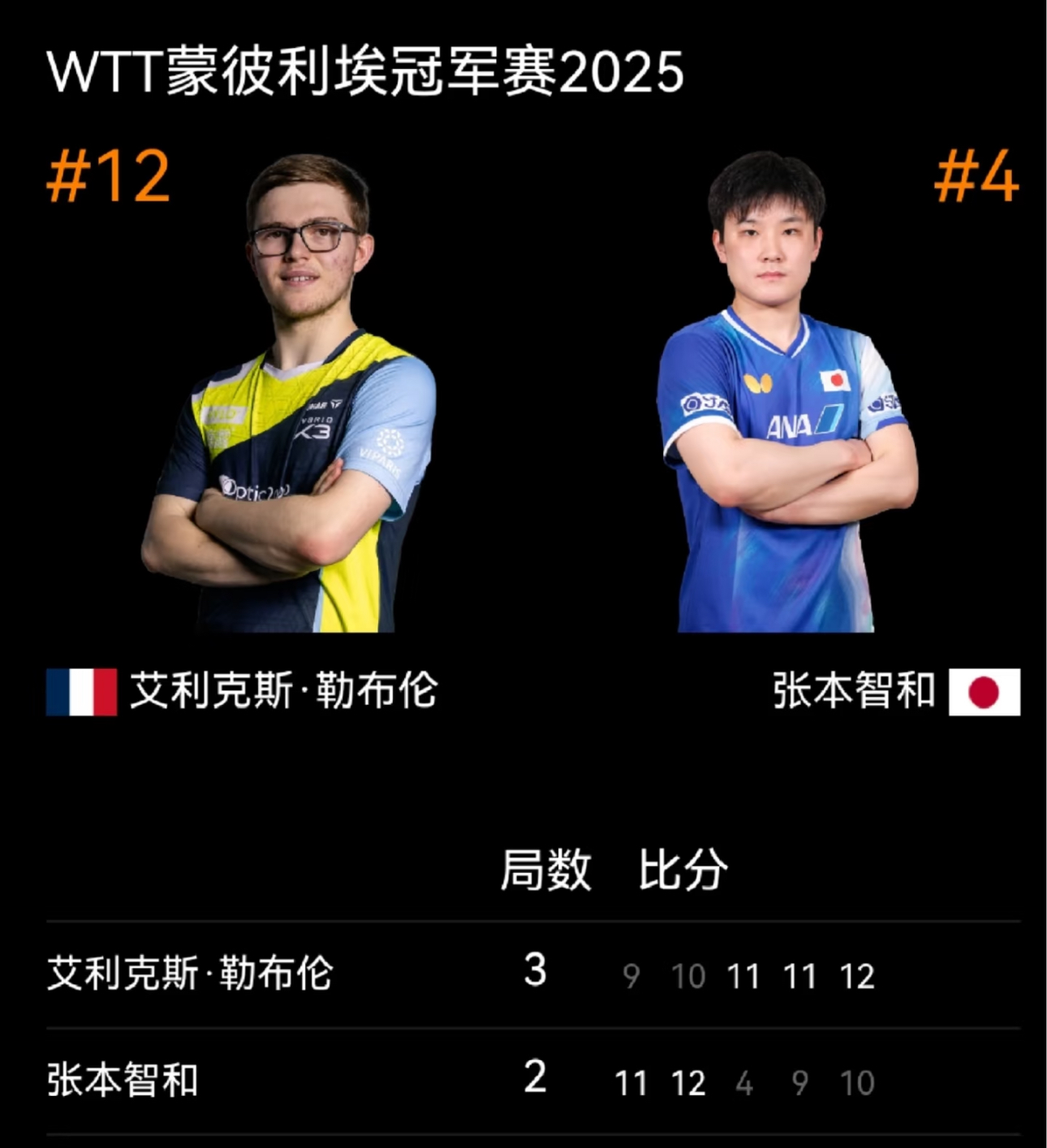 我原本打算刷个比分就睡,结果法国小伙勒布伦愣是把张本智和从天堂拽到地狱,再一脚踹进八强大门之外。