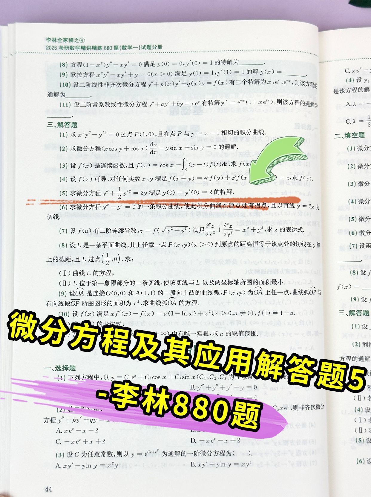 2026李林考研数学精讲精练880题数学一------高等数学------第七章微分方程及其应用------基础题------解答题5