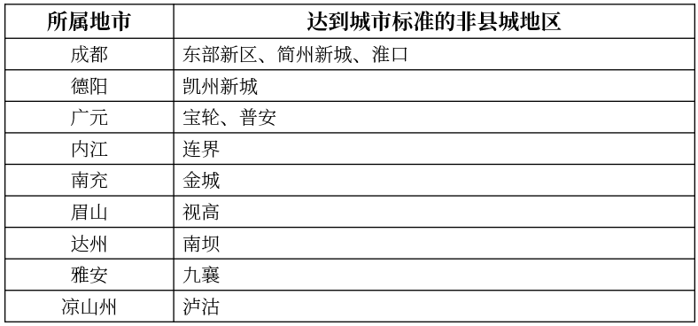以下是四川省内一些不足以称为城市的地区,但人口接近城市判定下限(3万)的乡镇聚落点。或人口虽然超过3万,但几乎全境都是低矮自建房,不满足判定标准的地区。与城市近似相连的不再列出: