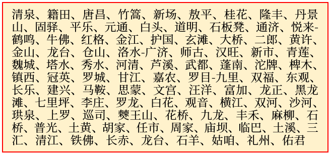 以下将四川真实城市中,区划不是正式的地市、县城者列出(具有独立性,与其他城市近似相连的不算!):