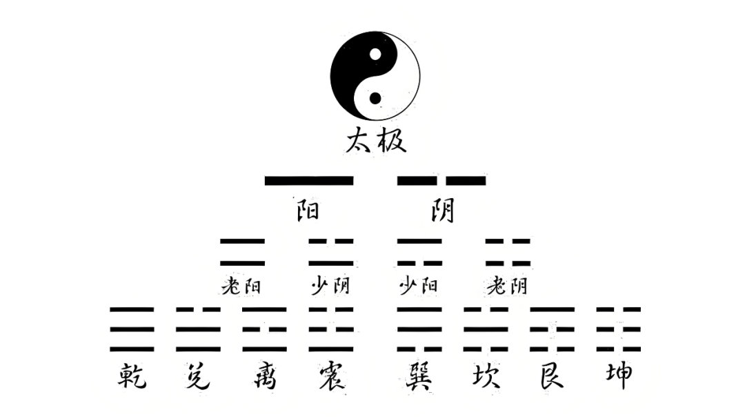 《易经》符号体系从阴阳两爻出发,通过严密的数理逻辑推演,构建了四象、八卦、六十四卦的完整系统。这一过程展现了:
