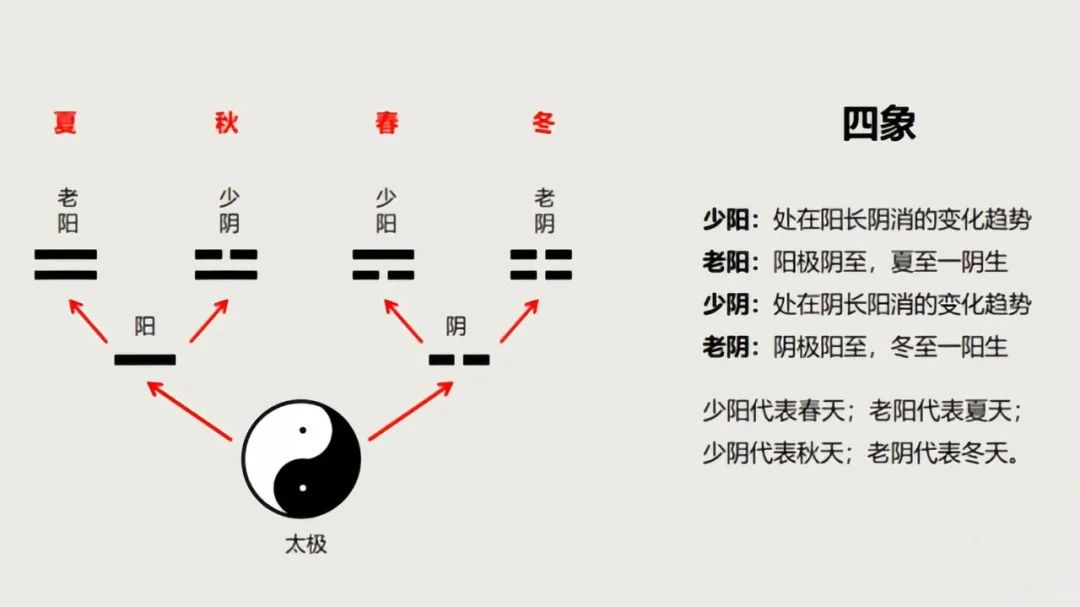 通过阴阳两爻的叠加组合(2²=4),形成四种基本状态,称为"四象":