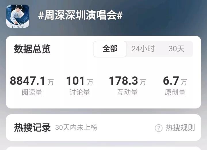 周深在深圳举行演唱会终于梦想成真了!祝福歌手周深!周深深圳演唱会消息,一时间冲上热搜,温暖了不少现场的深圳歌迷!网友们更是关注周深深圳演唱会消息!这一话题阅读量达到8847.1万,互动量178.3万,讨论量突破101万!