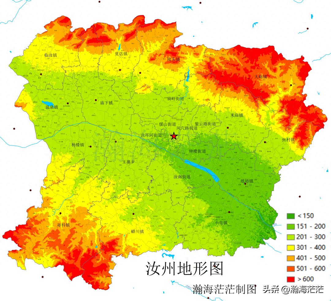 汝州市海拔地图如下: