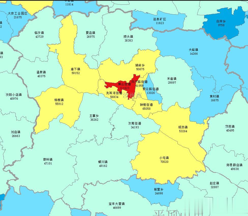 2020年末进行了第七次人口普查,汝州市各乡镇街道常住人口如下图: