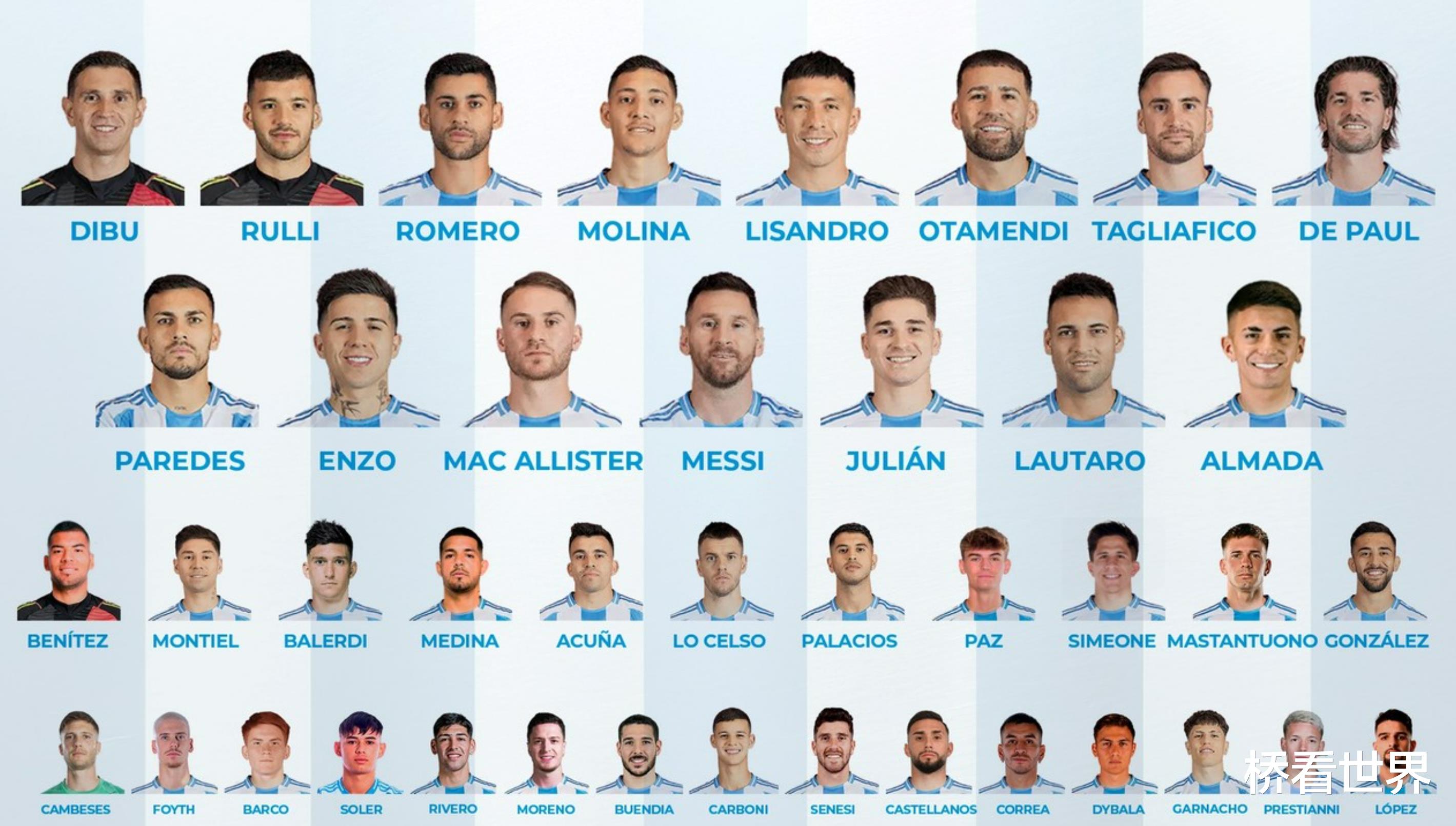 既有世界冠军成员(胡安・福伊特、迪巴拉、安赫尔・科雷亚),也有多项美洲赛事冠军得主(胡安·穆索、巴伦廷·卡尔博尼、加纳乔),还有 U20 年龄段的年轻球员(胡利奥·索莱尔、詹卢卡·普雷斯蒂安尼、克劳迪奥·埃切韦里),以及众多曾入选国家队、但未能在主力阵容中站稳脚跟的球员。