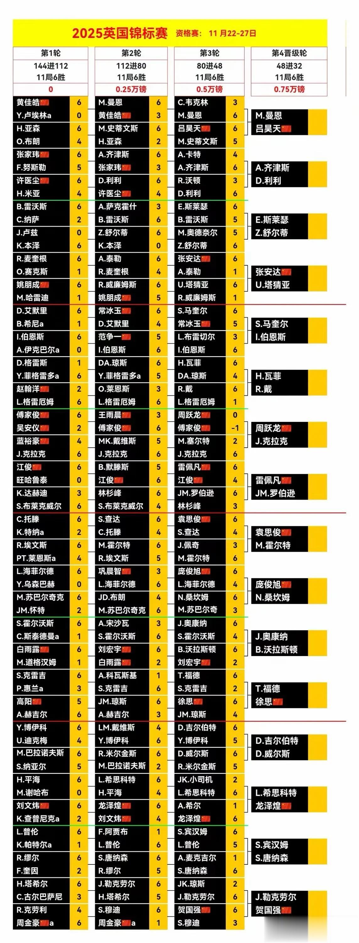 2025年斯诺克英锦赛16位种子选手:1号贾德·特鲁姆普、2号赵心童、凯伦·威尔逊、尼尔·罗伯逊、马克·威廉姆斯、罗尼·奥沙利文、约翰·希金斯、马克·艾伦、丁俊晖、肖恩·墨菲、马克·塞尔比、肖国栋、吴宜泽、巴里·霍金斯、加里·威尔逊、斯佳辉!种子选手签位表⬇️⬇️