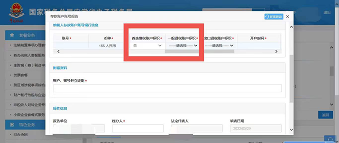 “首选缴税账号标识”,建议选择“是”,“一般退税账户”也建议选择“是”。