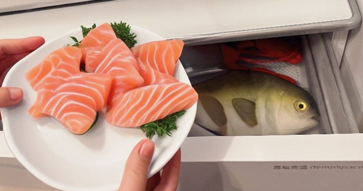 旁边的宽幅变温抽屉很有讲究,冷藏室里也能做到-4℃软冻,是冰箱里少有的高配置。挑剔的孩子爱吃三文鱼,我们买来新鲜整切的三文鱼段,调到-4℃软冻着,隔天想吃了拿出来不用解冻直接就能切片,口感也都能维持在最佳状态,做成刺身鲜嫩微甜、细软Q弹。还有一点,懒人本就赖床,之前做早餐都着急忙慌的,现在早上不用等化冻,多出十来分钟的黄金时间洗漱化妆,生活都变得更有松弛感了。
