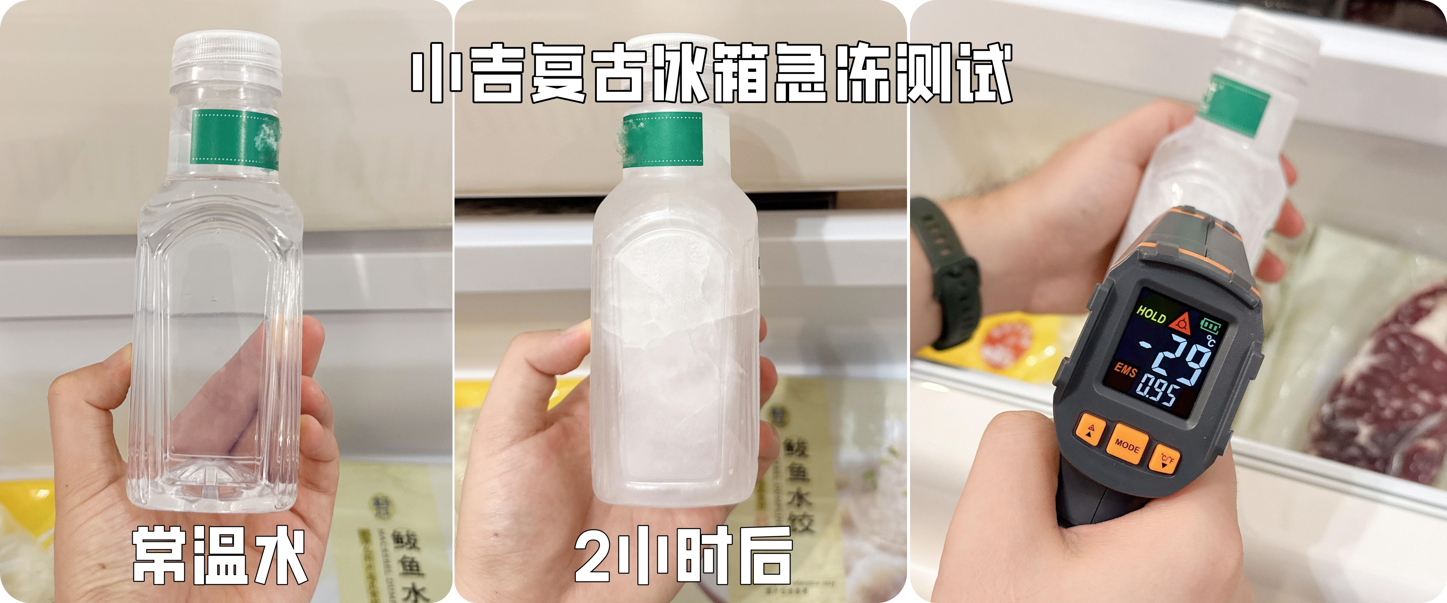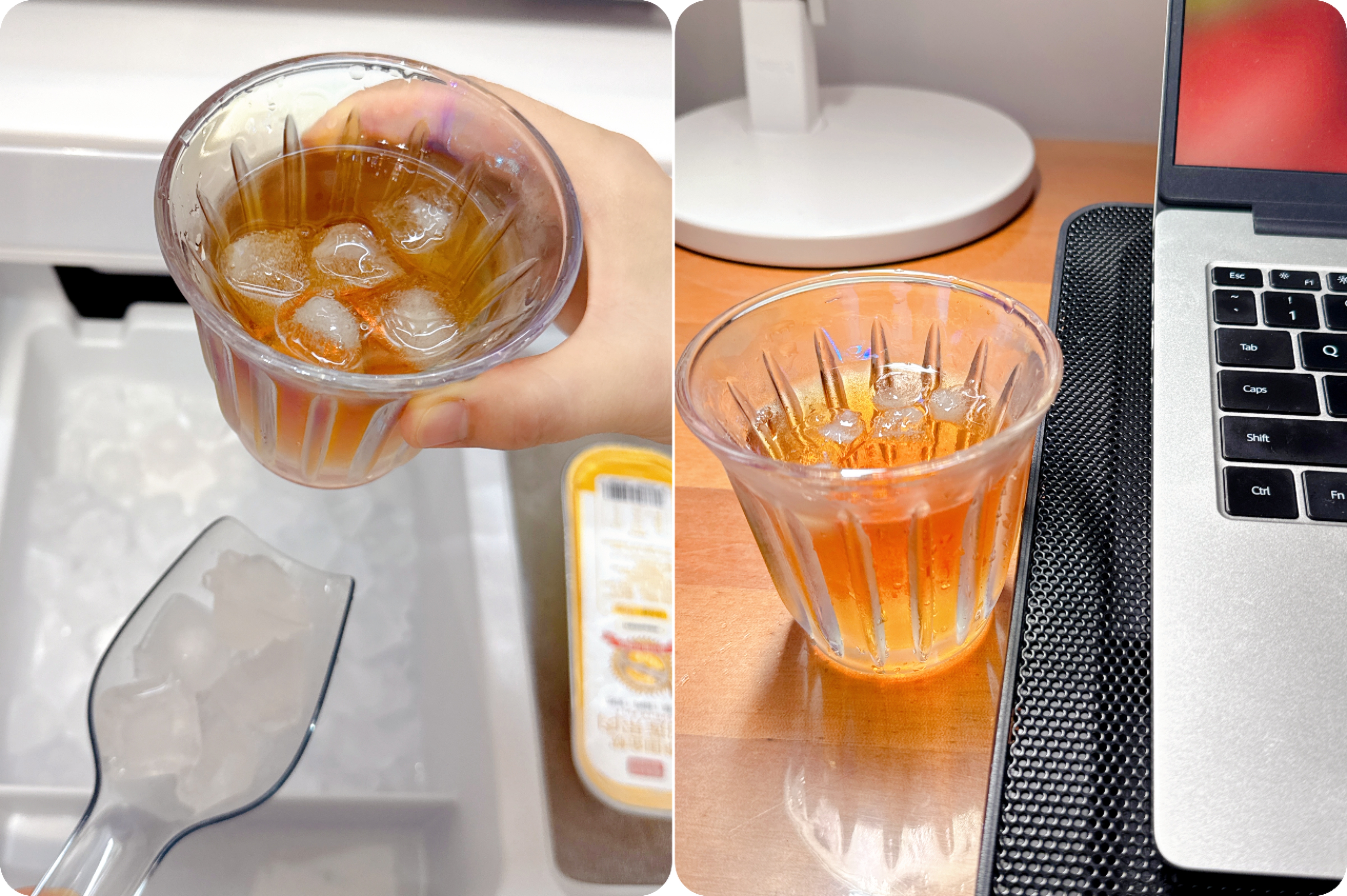 还有一点必须给力点赞,那就是小吉复古冰箱的一键自动制冰。夏天,冰块是救星——冰镇饮料、水果,瞬间降温解暑;冬天,冰块是帮手——炖肉焯水时,快速冷却肉质更嫩滑。冰块,让生活四季都“透心凉”又“胃暖暖”!有了小吉复古冰箱,夏天再也不用提前冻冰格了!加满水,按一下,几分钟就出冰,冰镇饮料、水果冰沙随取随喝,清凉又方便。