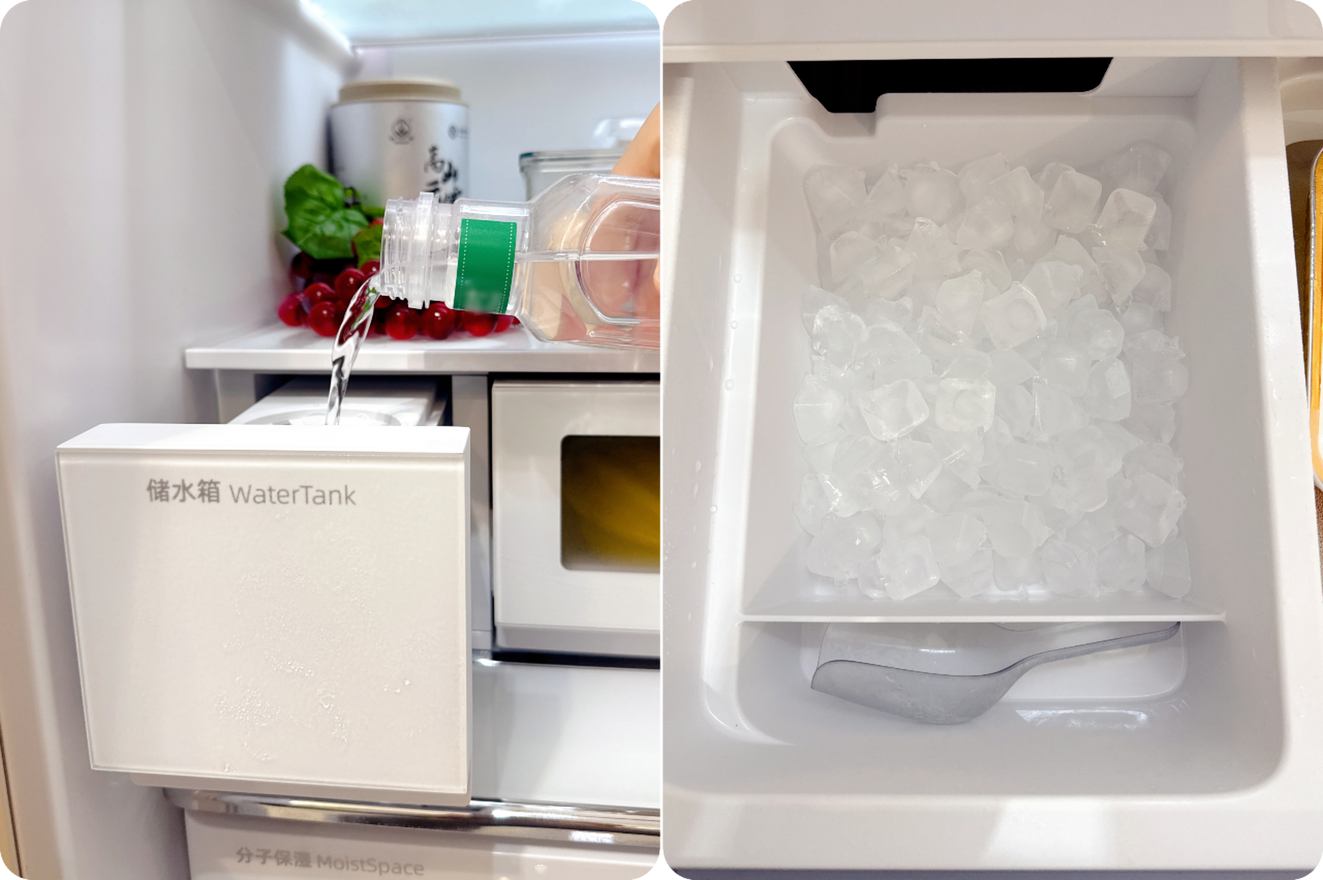 幸而现在有了小吉复古冰箱,全自动制冰功能实现全家冰饮自由,“水倒进去,冰制出来”,冰块独立存储,质感均匀剔透、丝毫没有杂质异味。