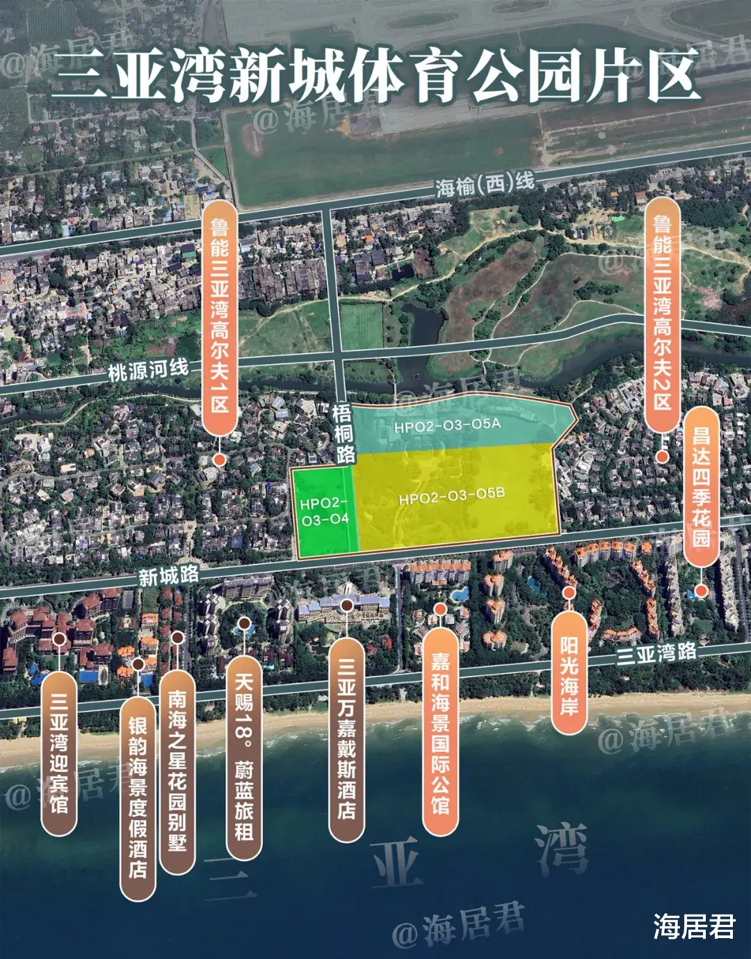 这些地块位于三亚湾核心区域,东邻鲁能三亚湾高尔夫2区、西临鲁能三亚湾高尔夫1区、南至新城路、北临水域,总用地12.5237公顷(约187.86亩)。