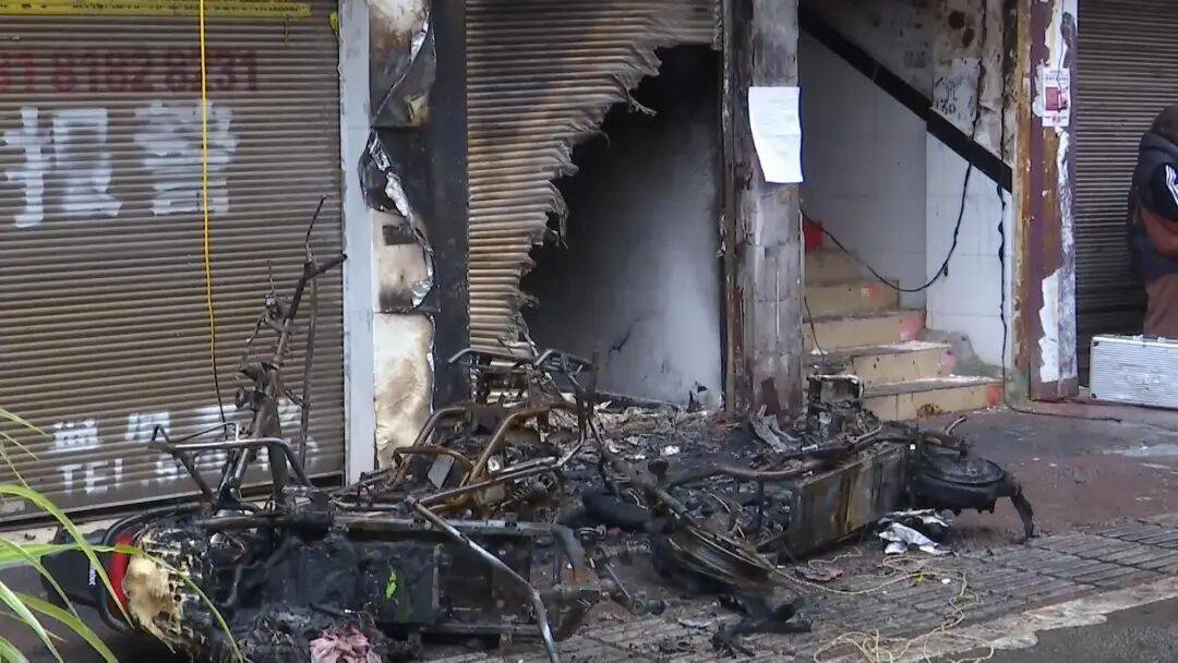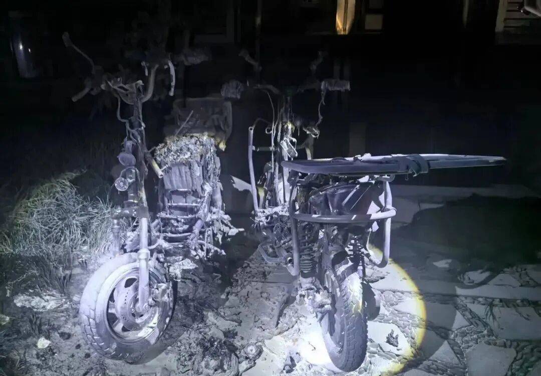 11月11日深夜爆燃,飞线充电酿惨剧,两辆电动车烧成骨架
